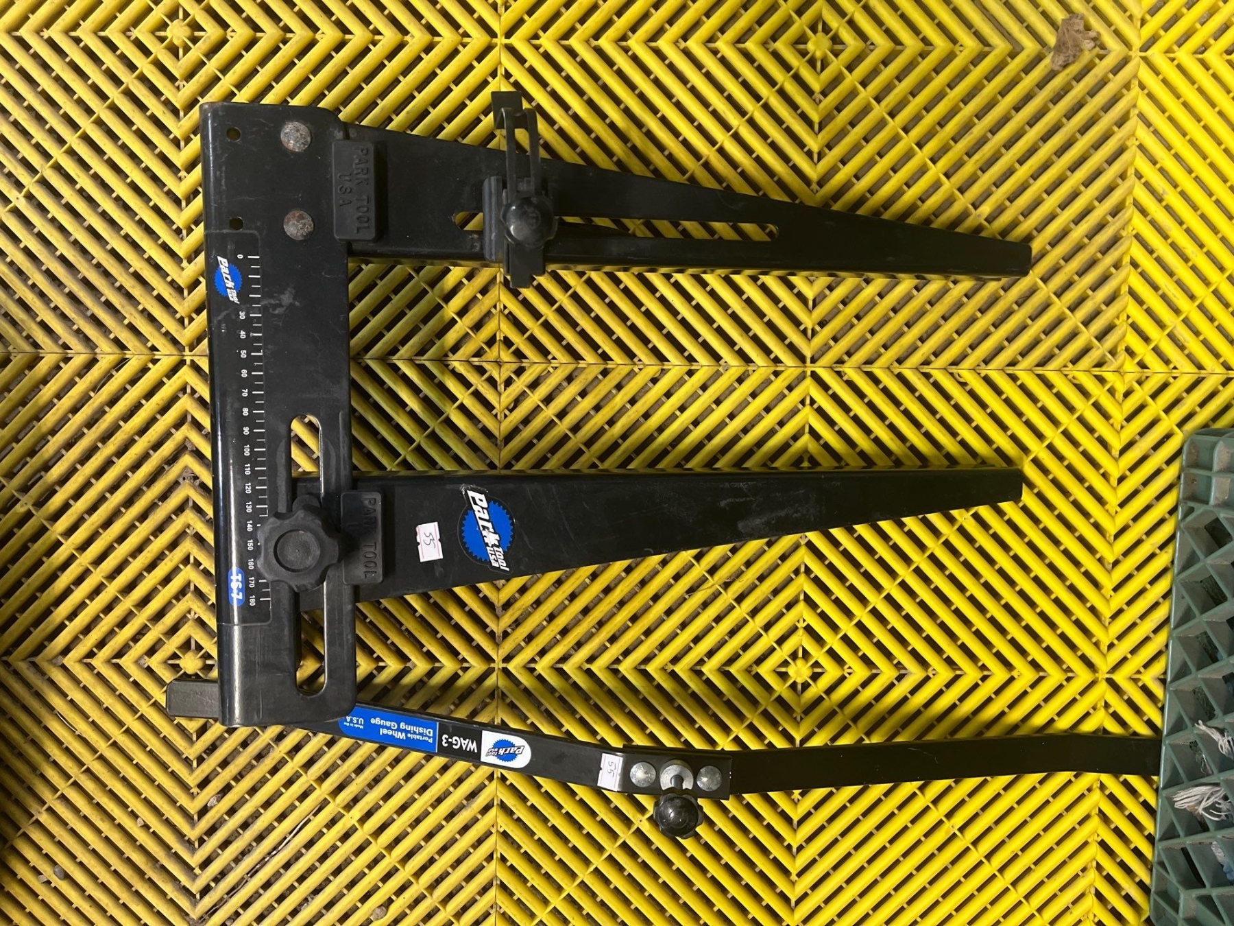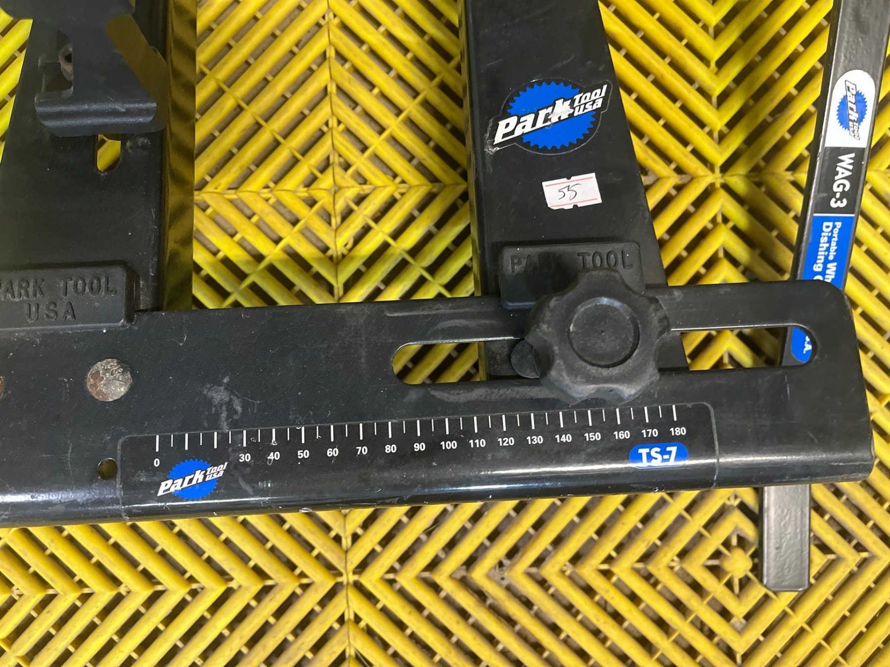 Wheel Truing Stand Made By Park Tools USA . Made With Heavy Gage Steel That Allows For Accurate Truing & A Portable Wheel Dishing gage WaG-3