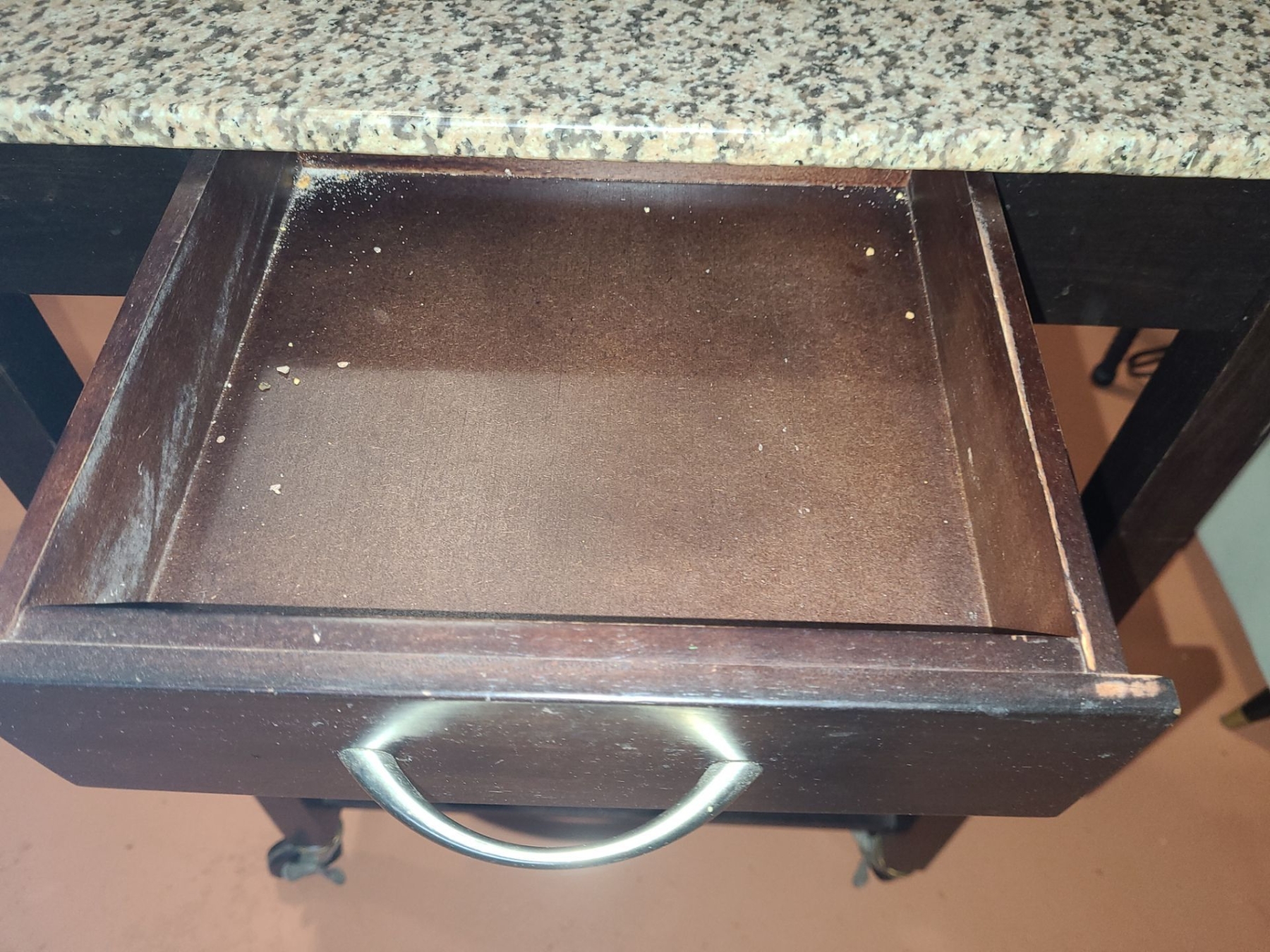 Wheeled Bar Trolley with Faux Marble Top and Storage Drawer F36 T, 28 L, 18 W