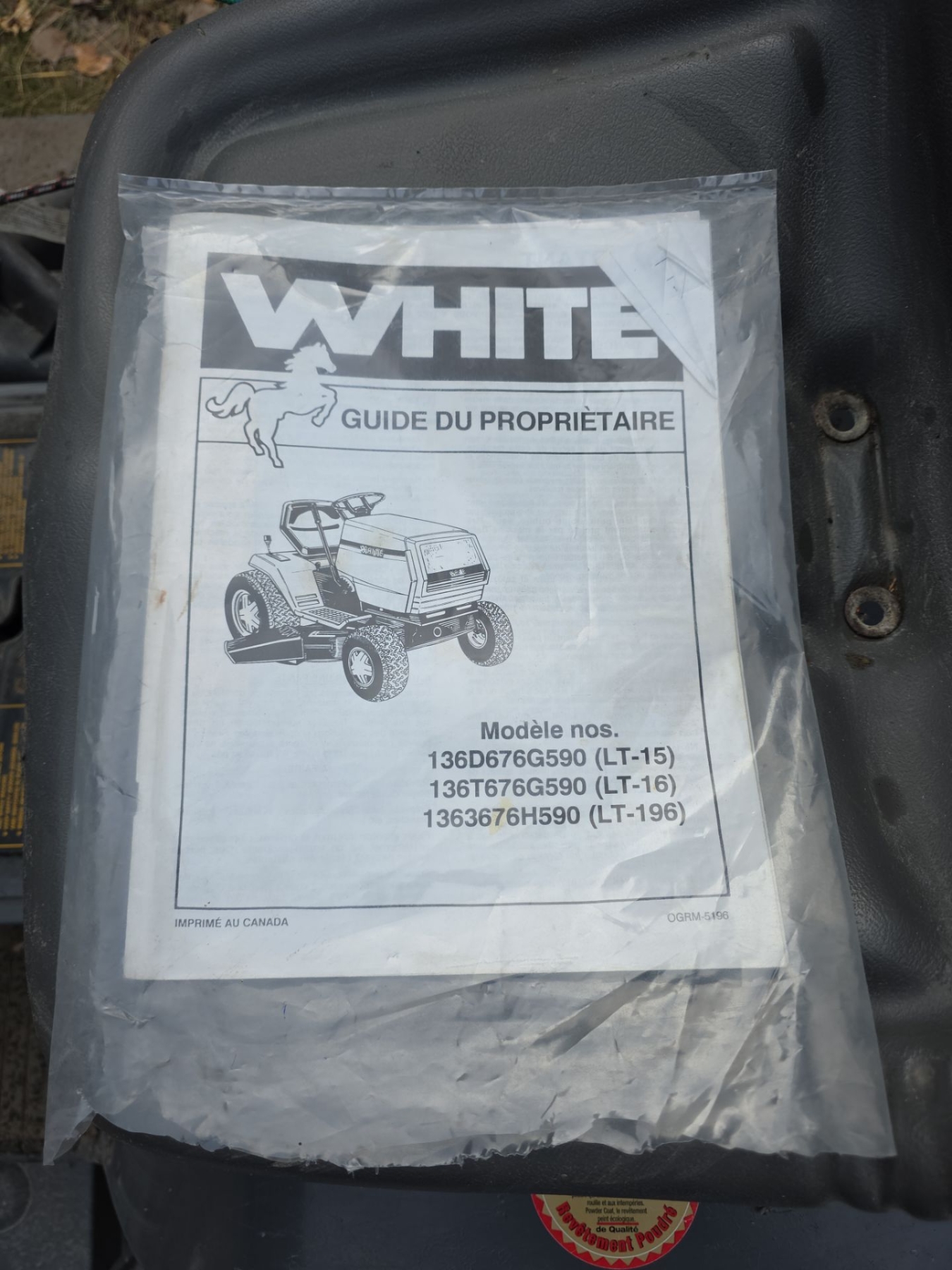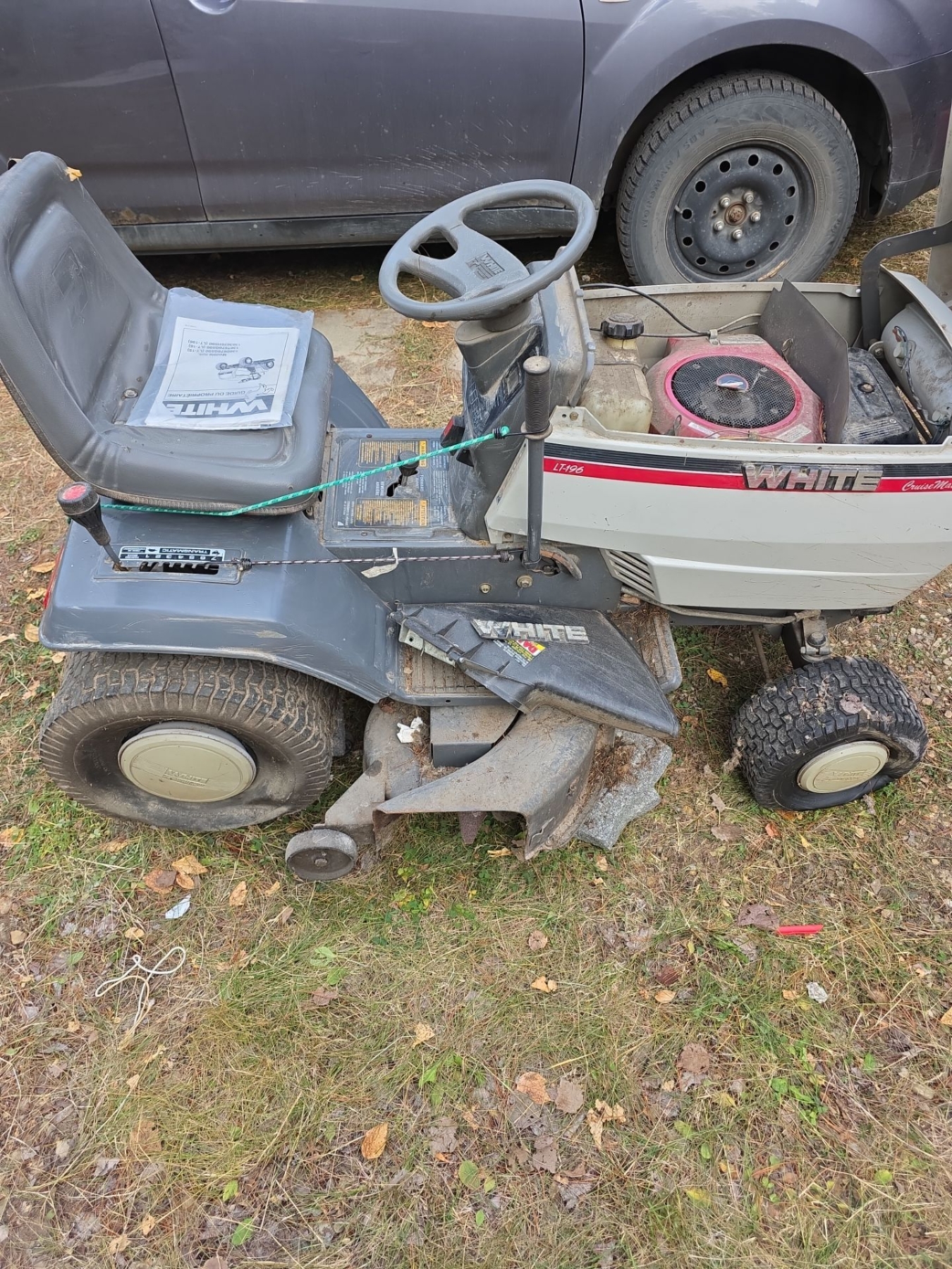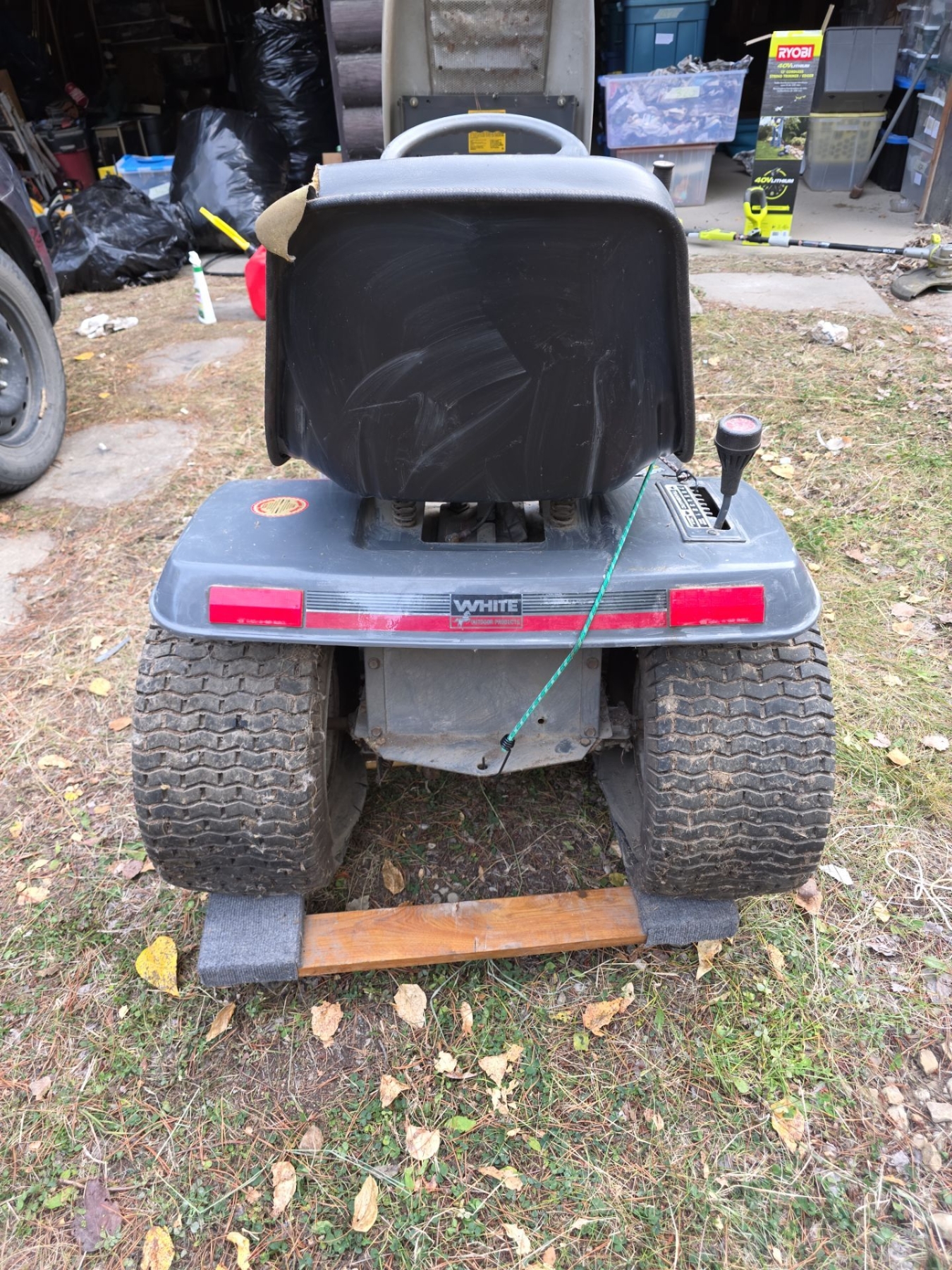 White LT196 Series Riding Lawn Mower, Runs & Mows But Needs Tires & Battery