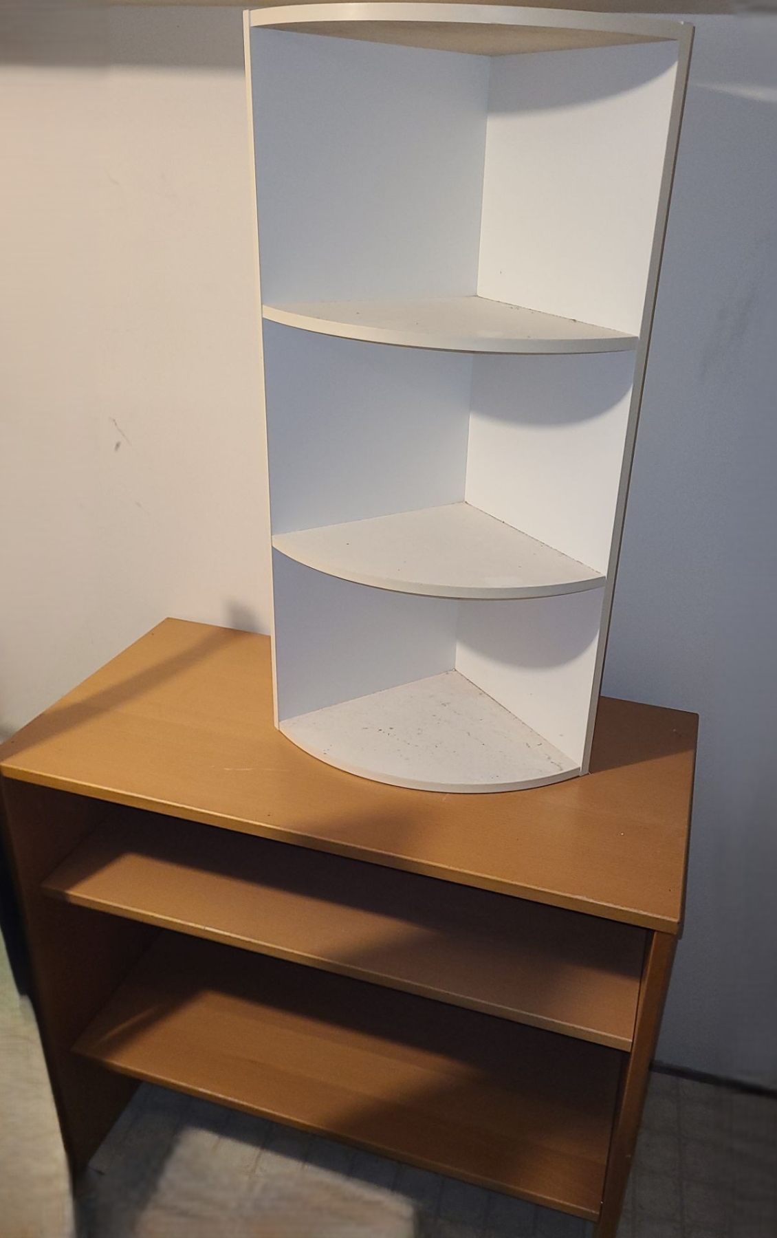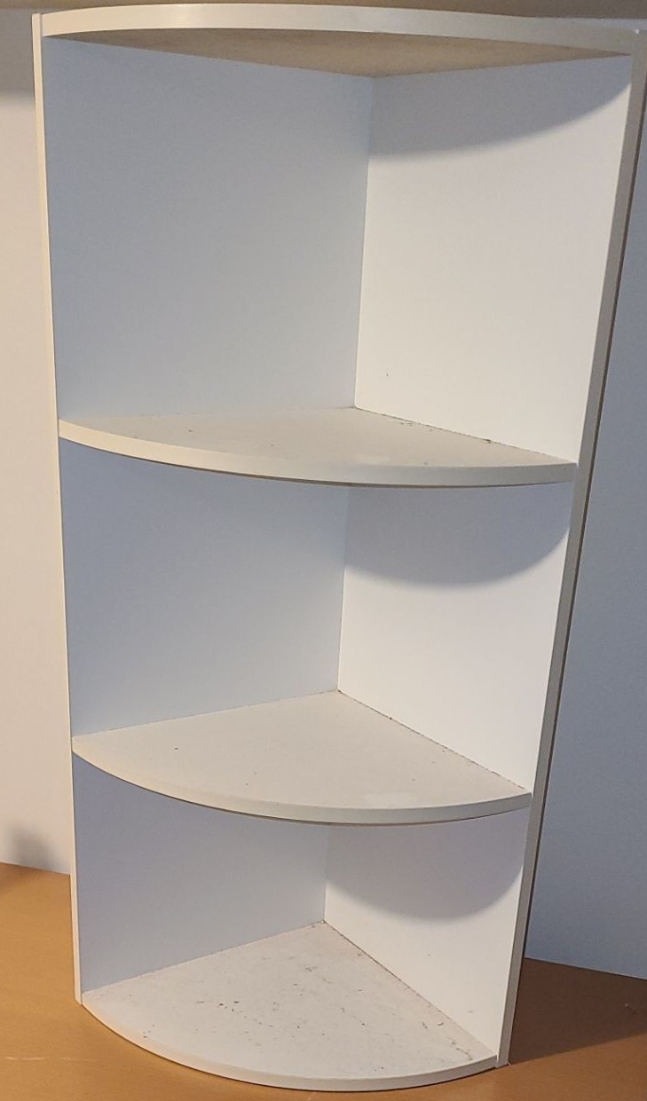 White MDF Corner Wall Shelf 16.5 W, 10.5 D From Centre, 31.5 T and Shelving 33 W, 17 D, 32 T