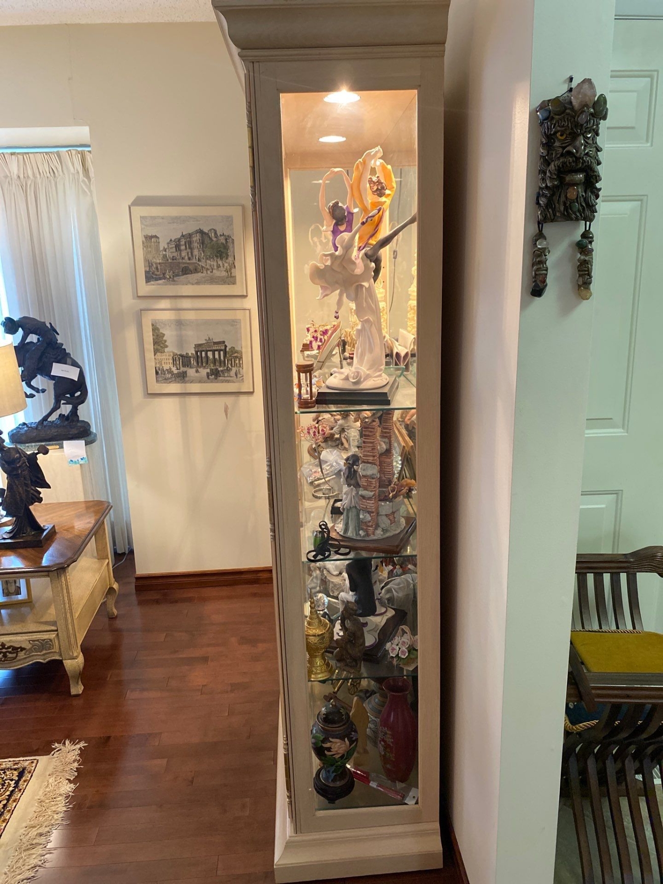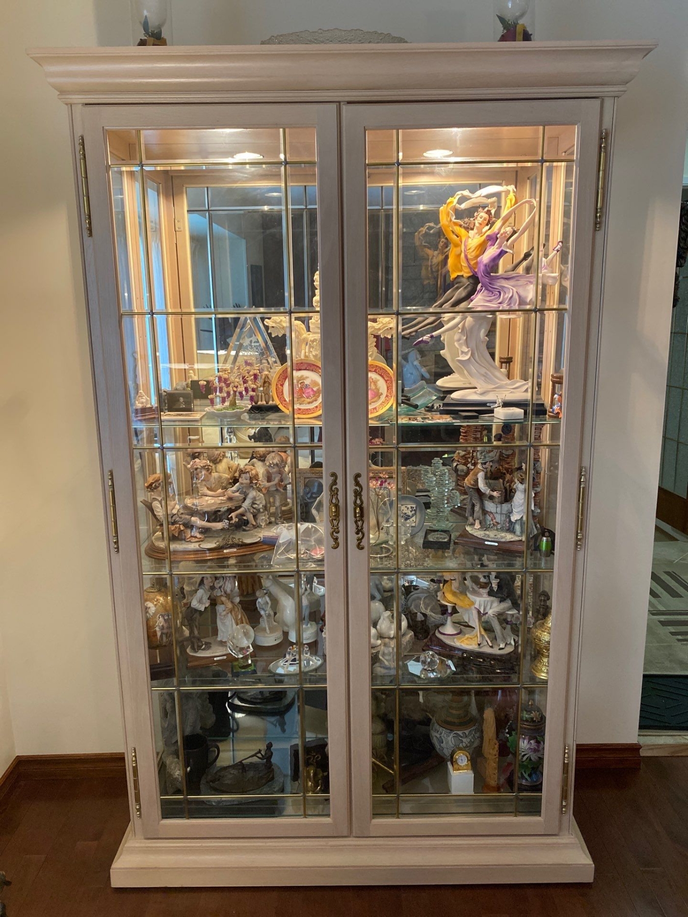 White Oak Cabinet with beveled glass and built in lighting 45W x 15D x77T Contents Not Included