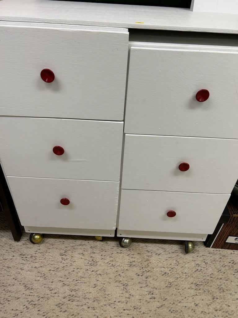 White Painted Wood Chest Of Drawers On Rollers 36W x25D x 39T