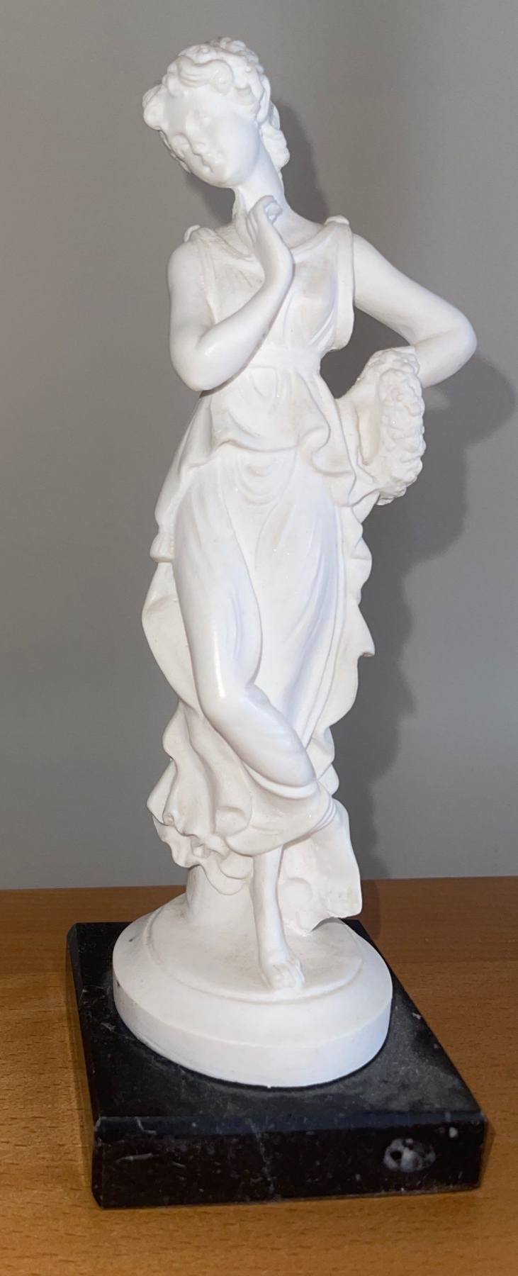 White Sculpture on Marble Block Artist Unknown resembles Santini 7" tall