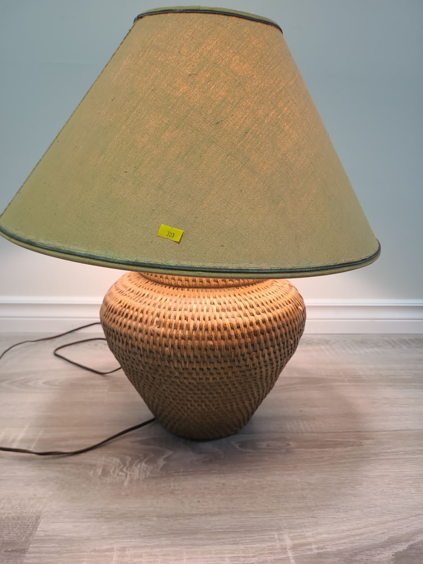 Wicker-look pottery lamp with beige shade- 19W, 22T