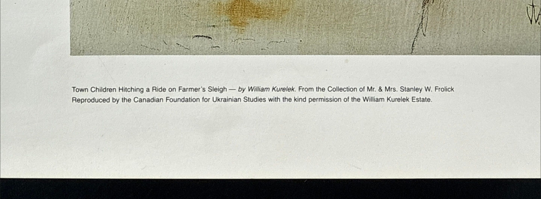 William Kurelek "Town Children Hitching a Ride on Farmer's Sleigh" Print 6.5Wx23H