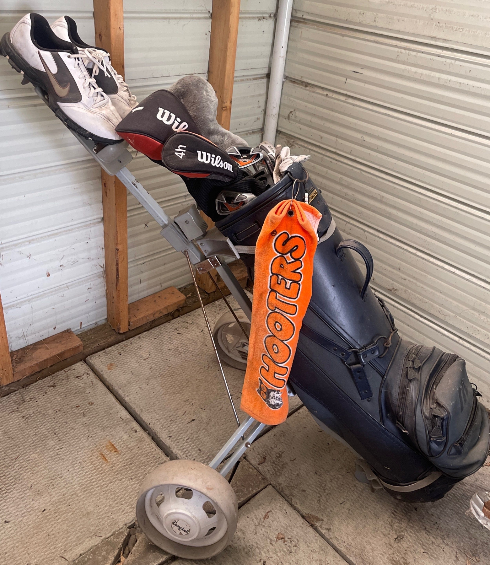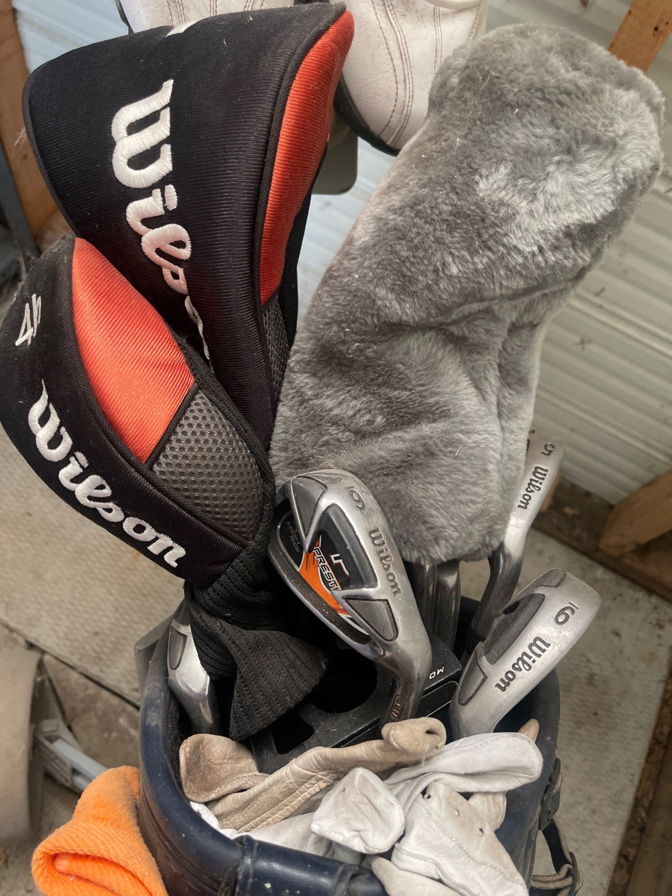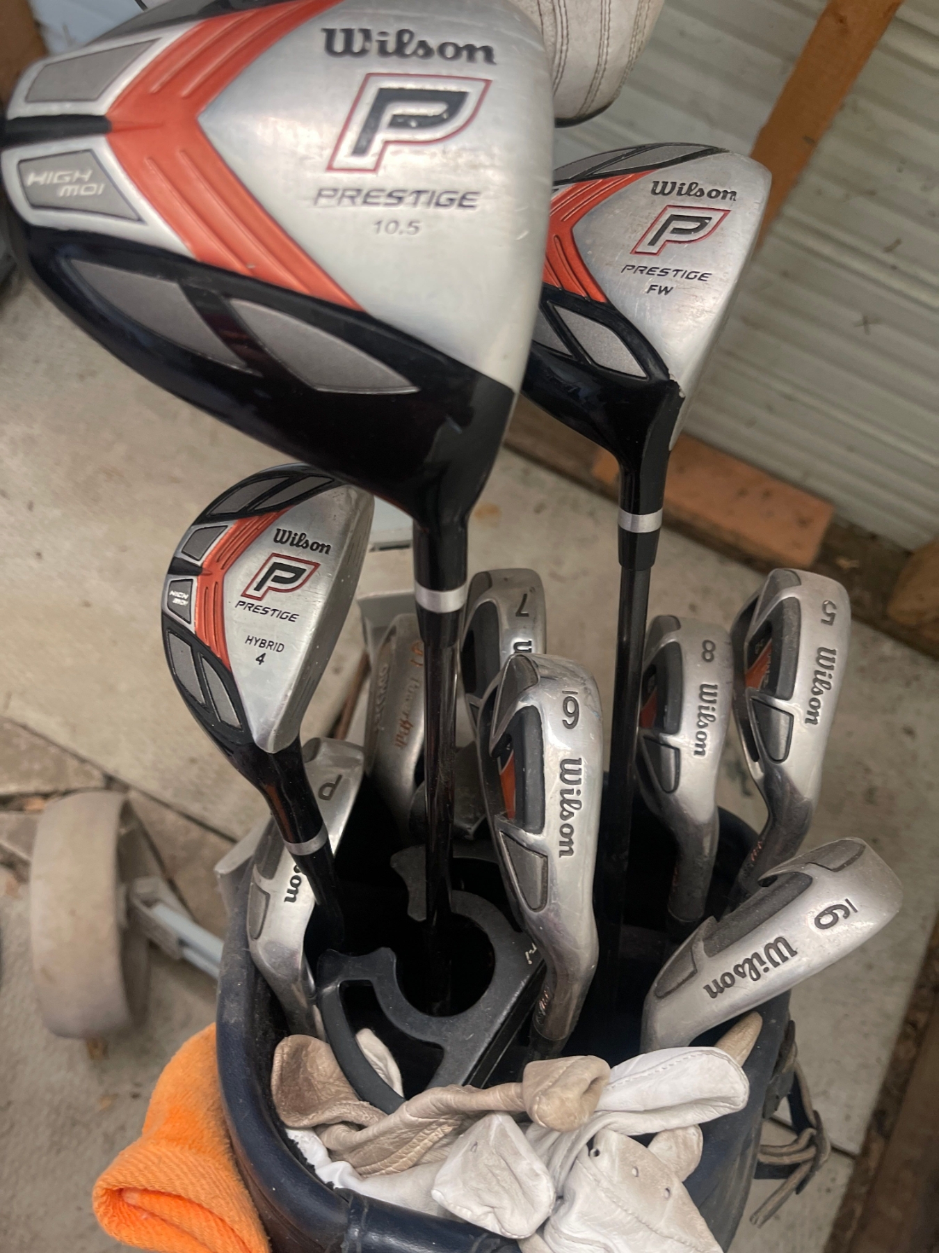 Wilson Prestige Right Handed Men's Gold Clubs w/Bag, Nike Golf Shoes, & Hooters Towel