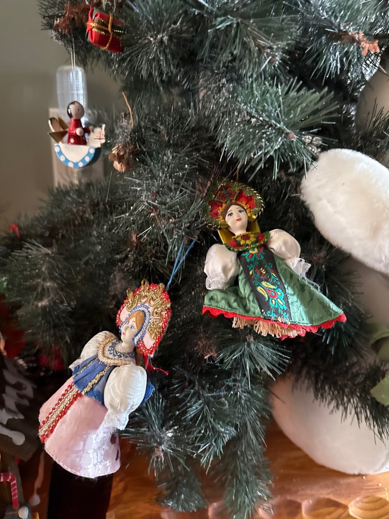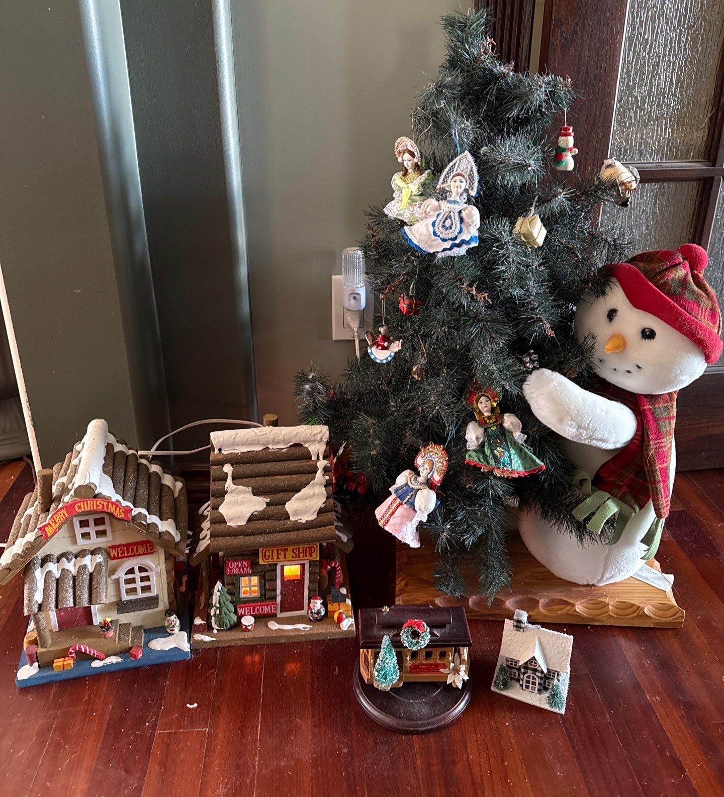 Winter Holiday Fun - Tree w/ European Folk Dancer Ornaments, Light Up Houses, Music Box