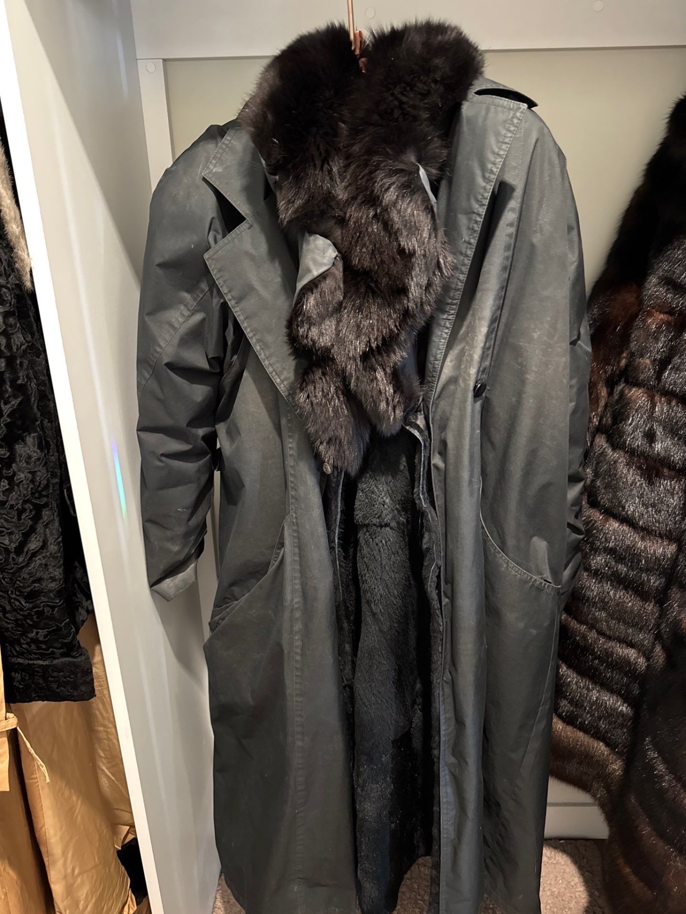 Winter Outerwear - Ladies Genuine Fur Lined Trench / Over Coat Size L