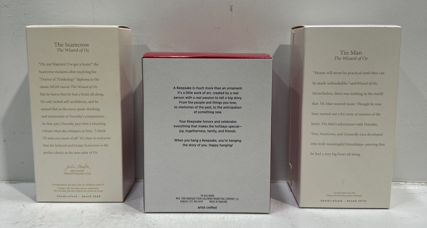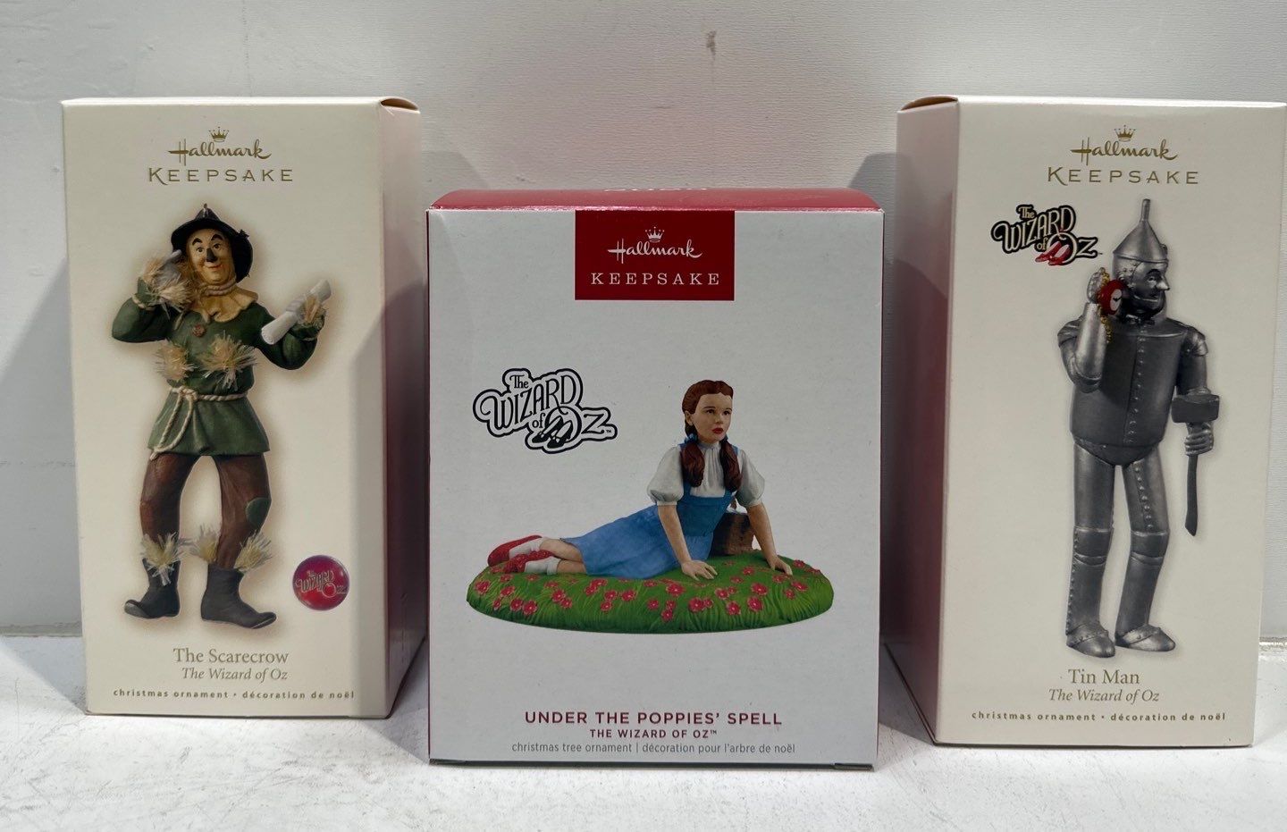 Wizard of Oz- The Scarecrow, Under Poppies' Spell, Tin Man Hallmark Ornaments
