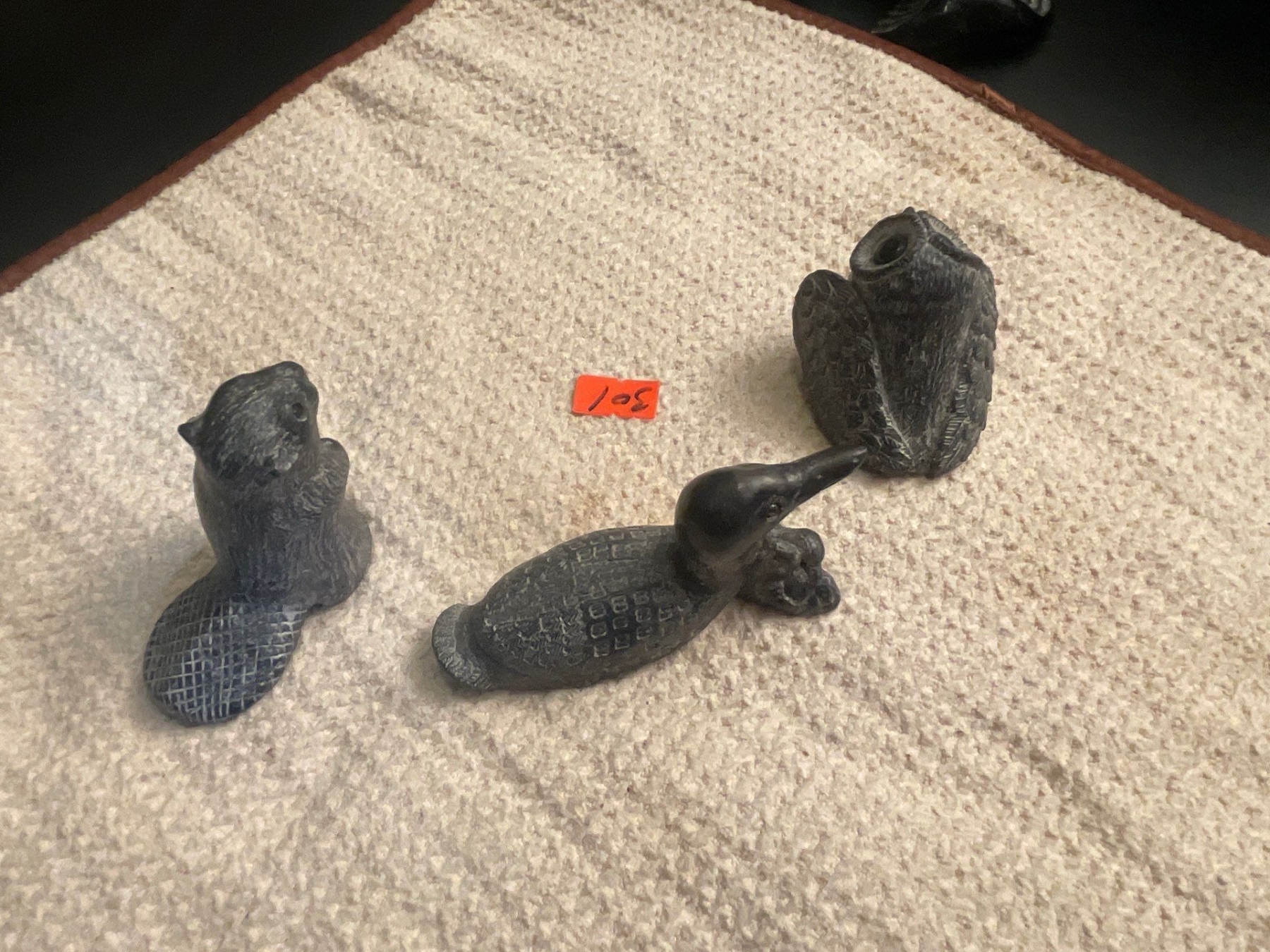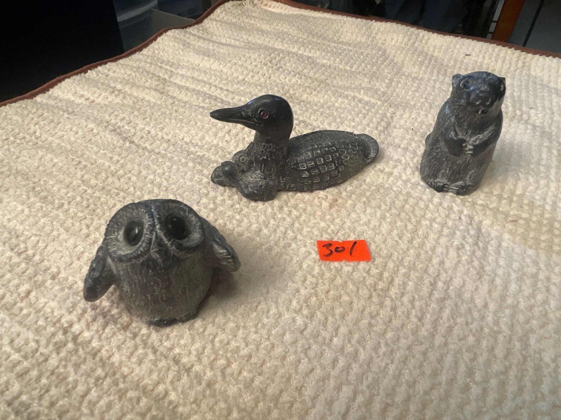 Wolf Original Soapstone Carvings Duck, Owl, Beaver