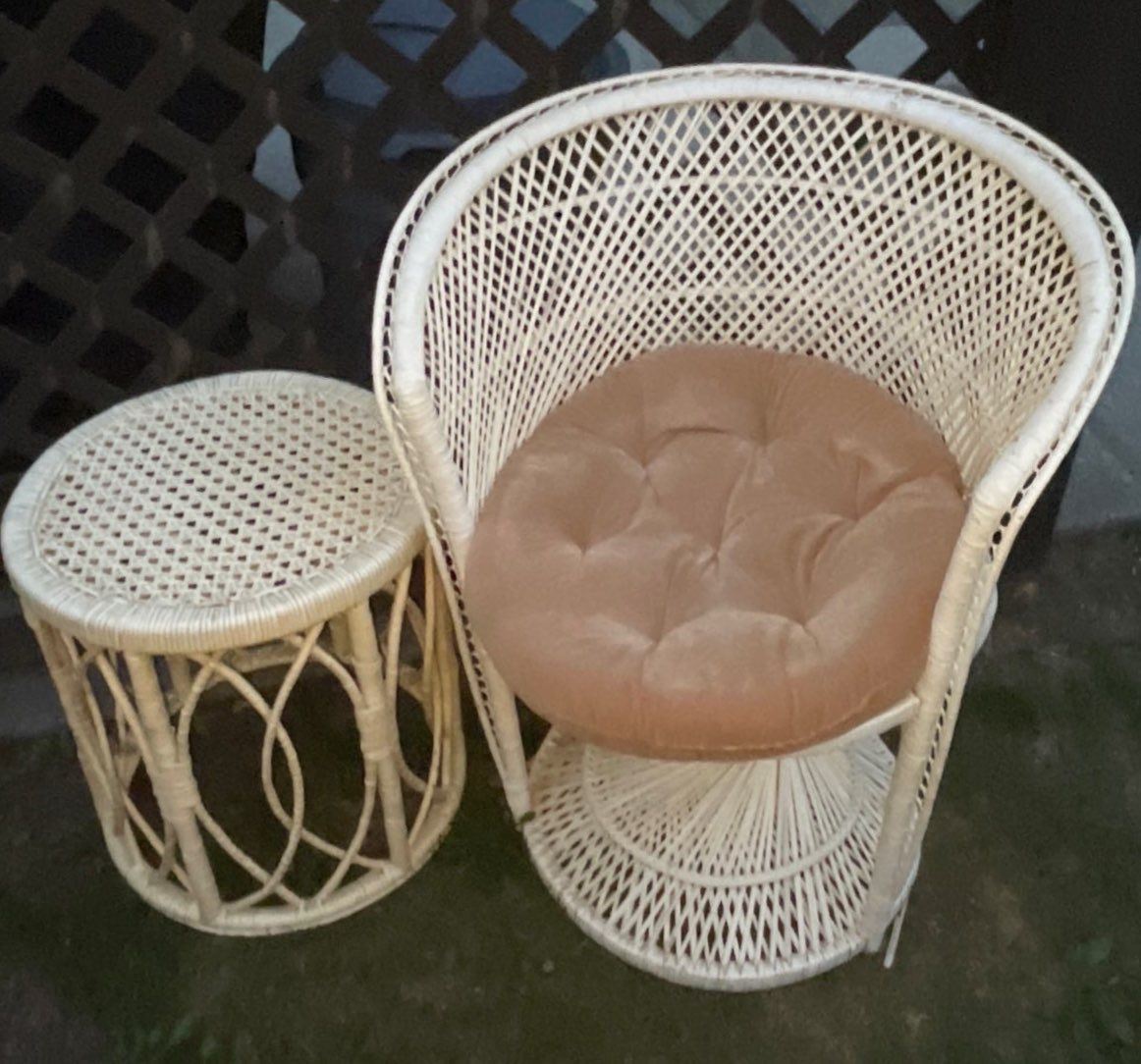 Wonderful Wicker Chair w/ Side Table 29x28x47