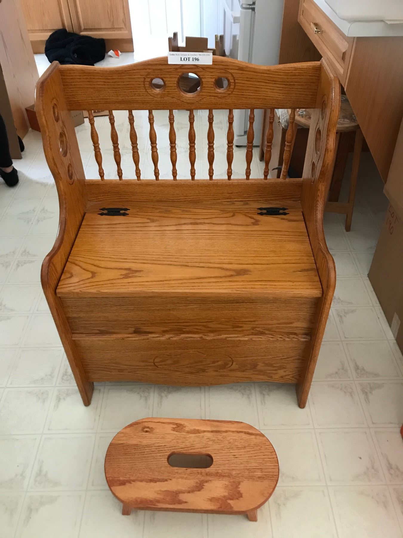Wood Bench w Storage & Wood Stool