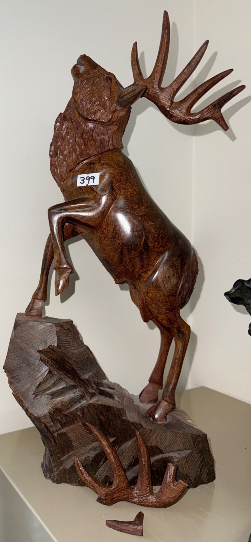 Wood Carving Cariboo Statue 17T Horns Need Glue