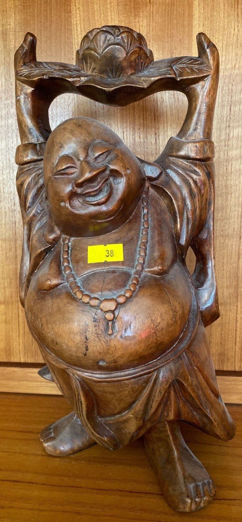 Wood Carving Jolly Asian Good Luck Merchant 13T