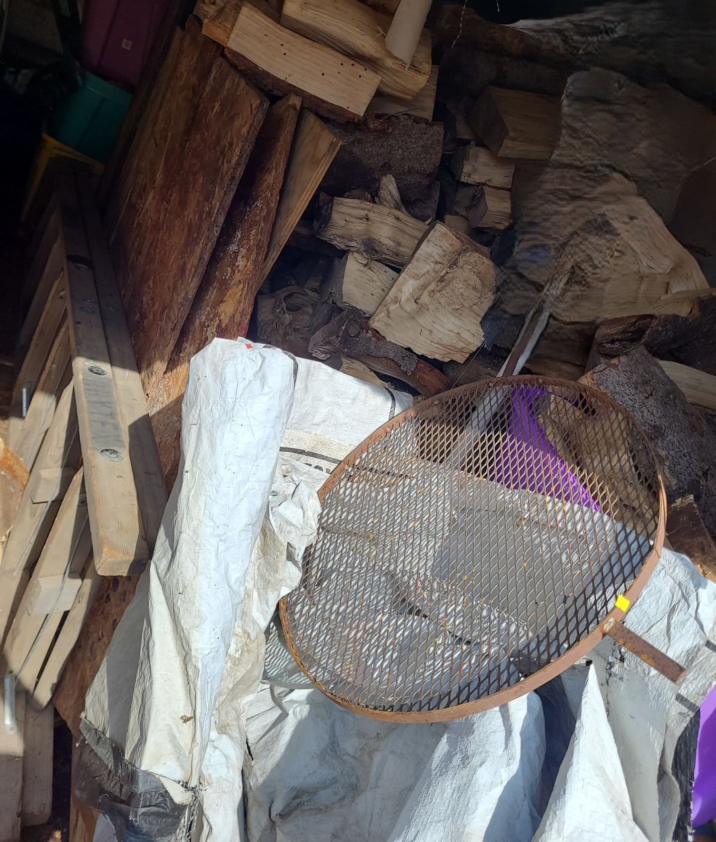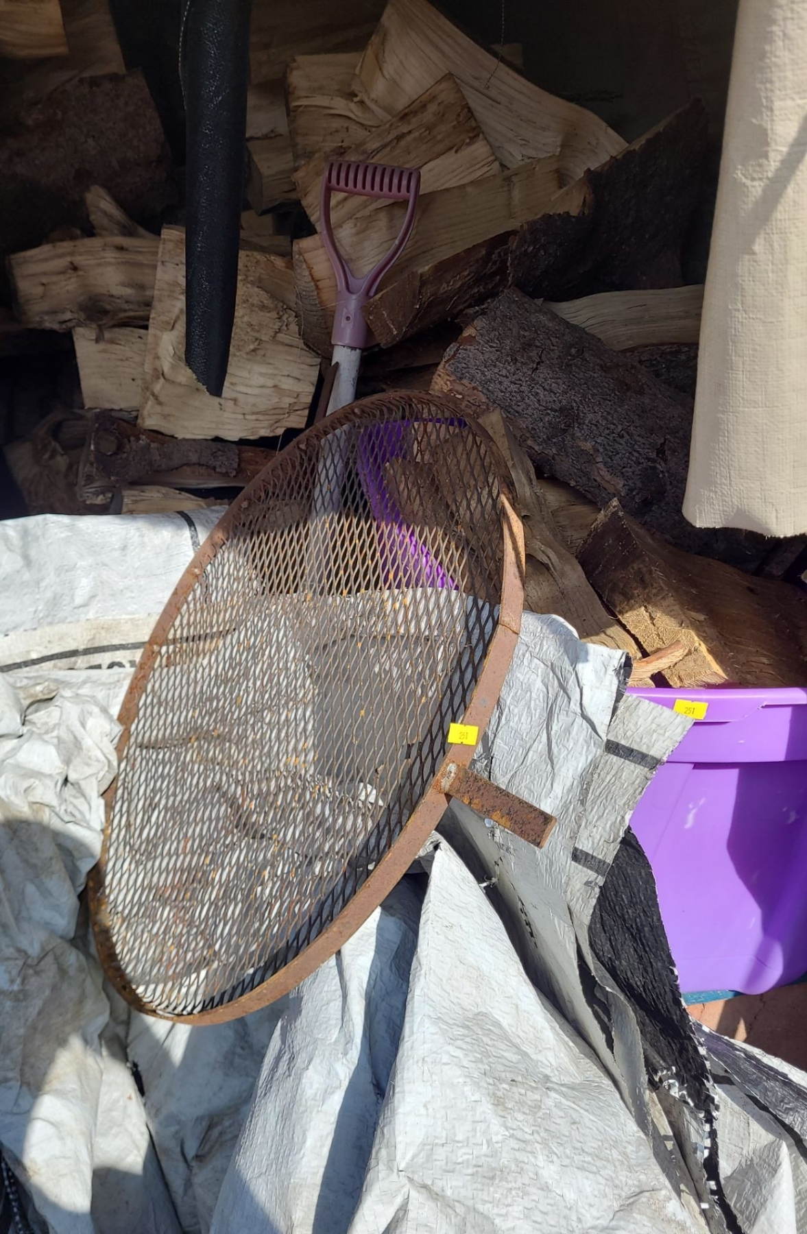 Wood/ Firewood as Shown, Wooden Ladder, Fire Pit: Grate 23" Diameter, Grilltop, Bricks for Pit