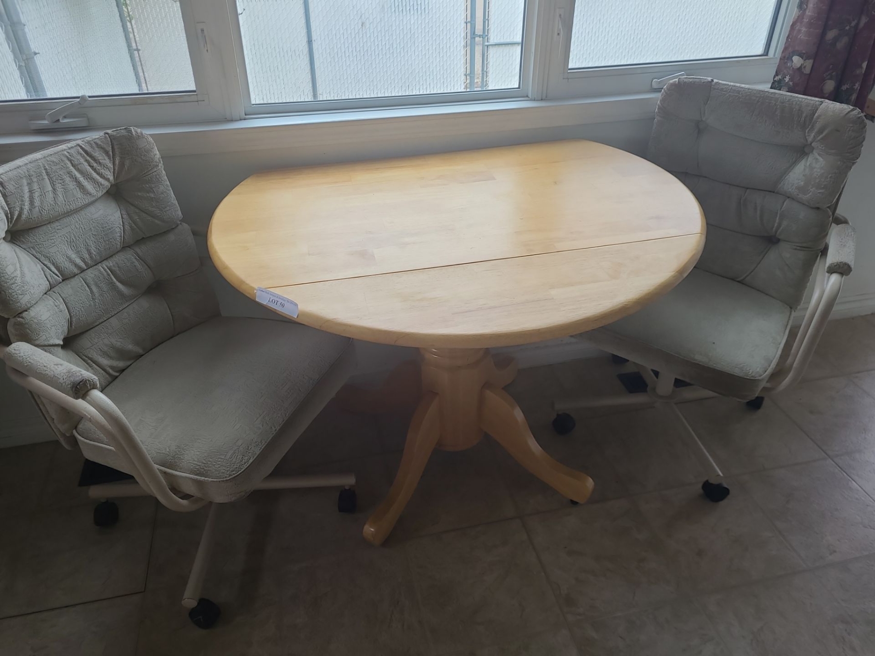 Wood Foldable Kitchen Table & 2 Chairs. 42 dia, 30 h
