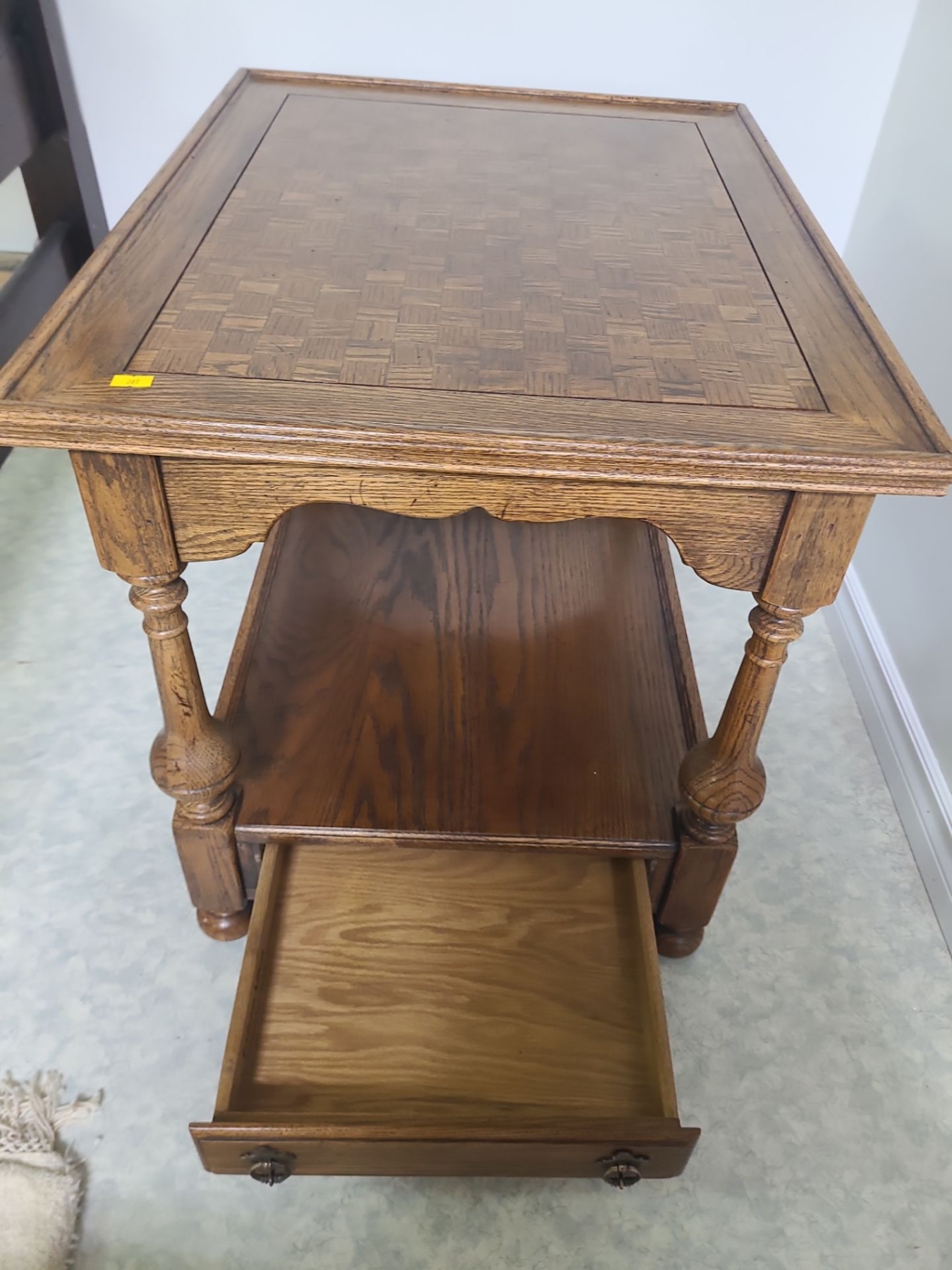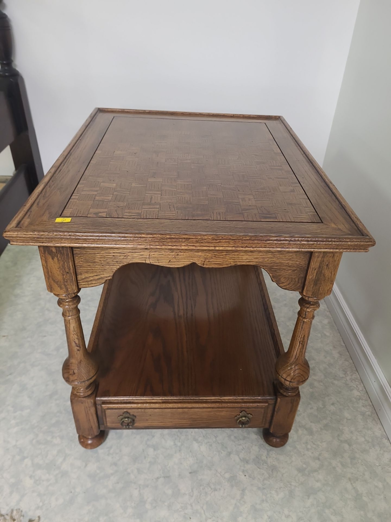 Wooden 2 tiered side table with 1 drawer - 21W, 27D, 23T