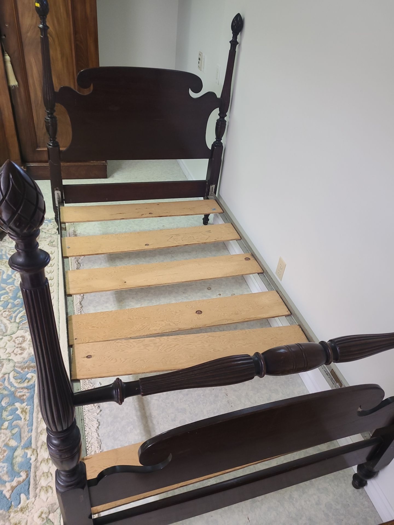 Wooden 4 poster antique daybed (43W, 78D, 54T) dis-assembly required