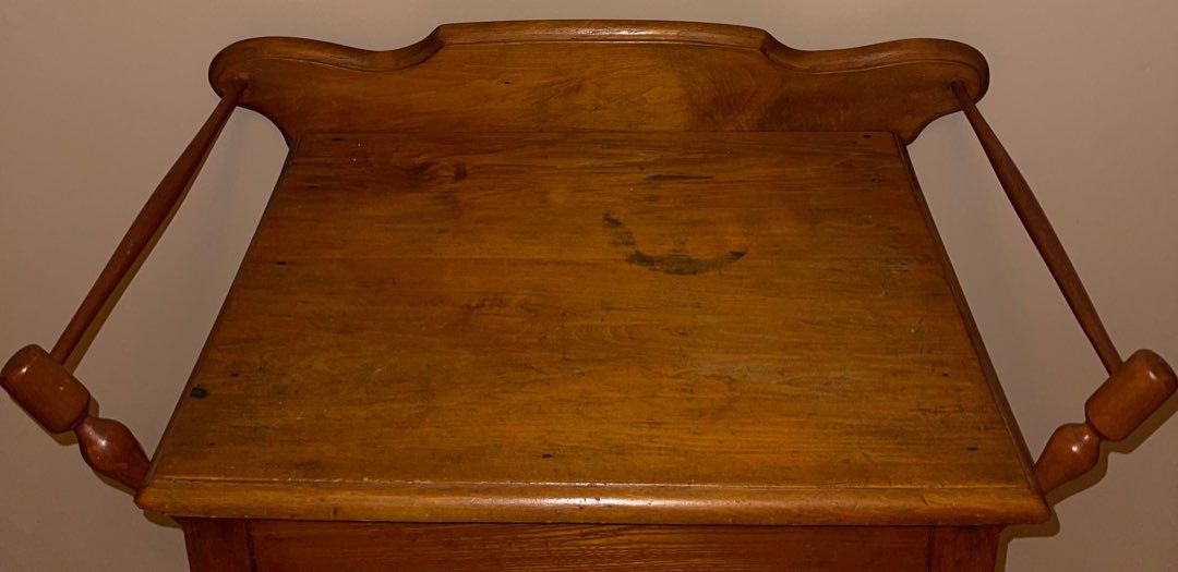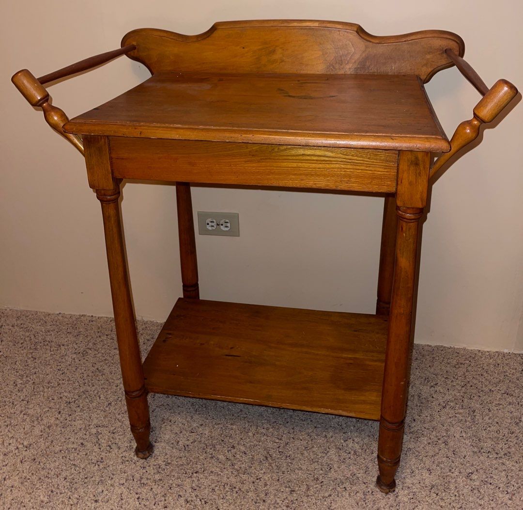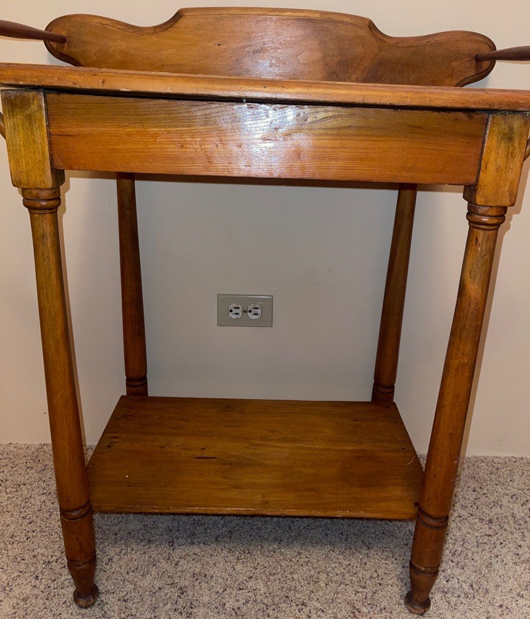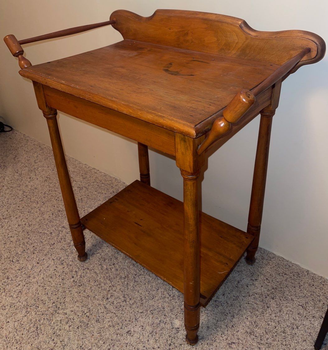 Wooden Antique Washstand w/Towel Bars & Lower Shelf 19th Century Early