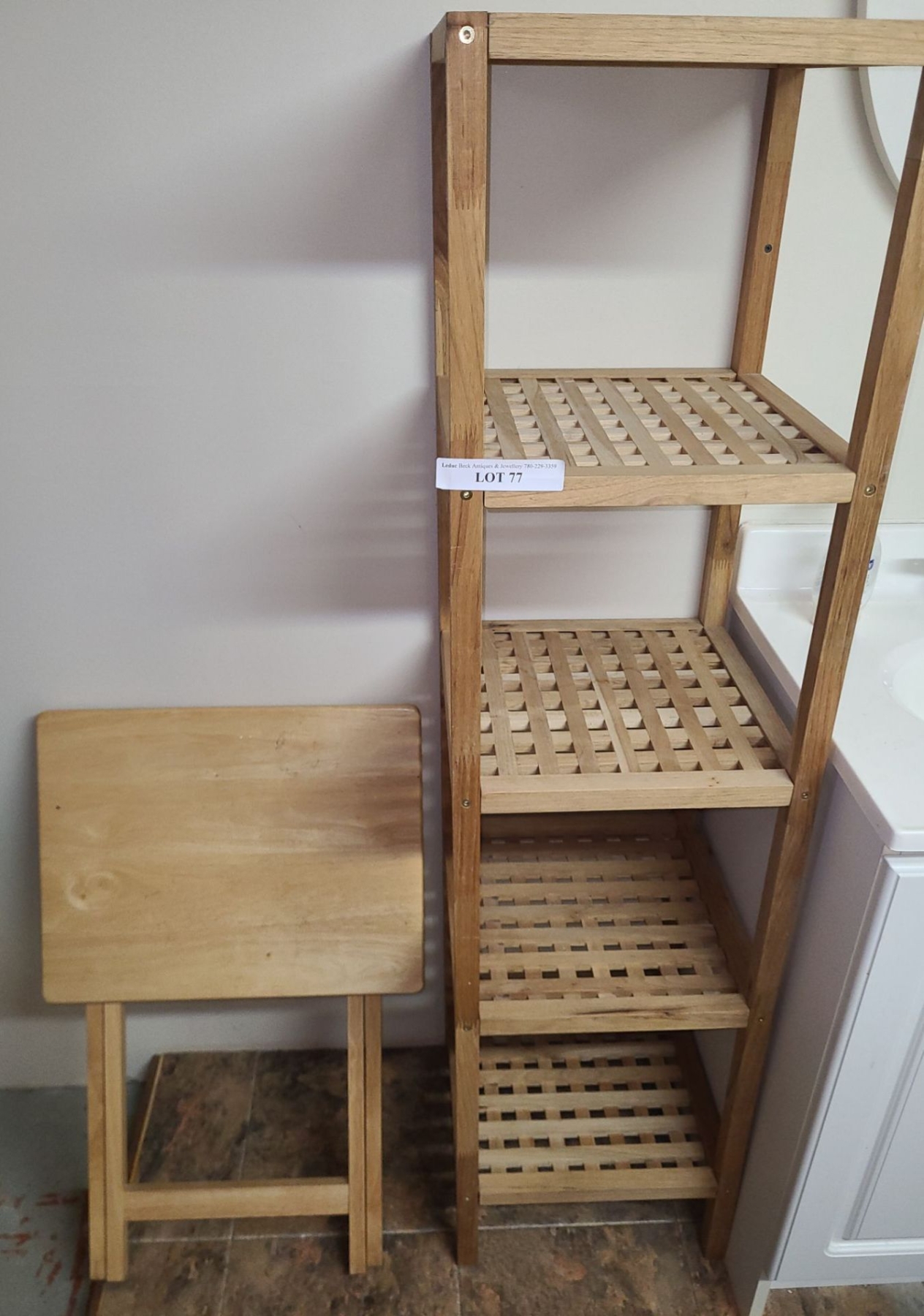 Wooden Bathroom Shelving Unit 14 w, 14, d, 55 h & Wood TV Tray