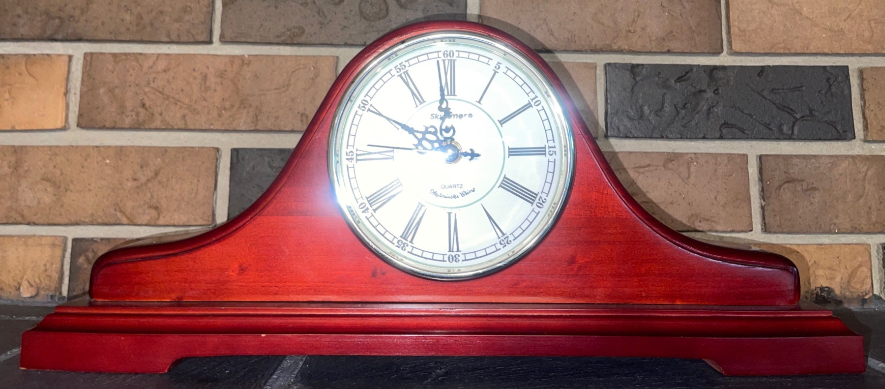 Wooden Battery Operated Mantle Clock Model# 882-634 Skymere Quartz 9"tall