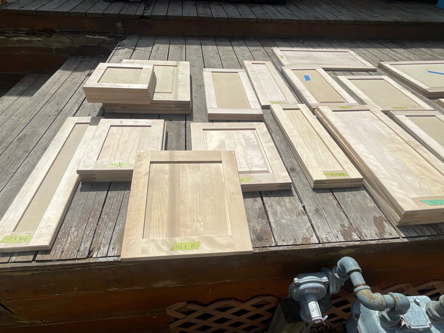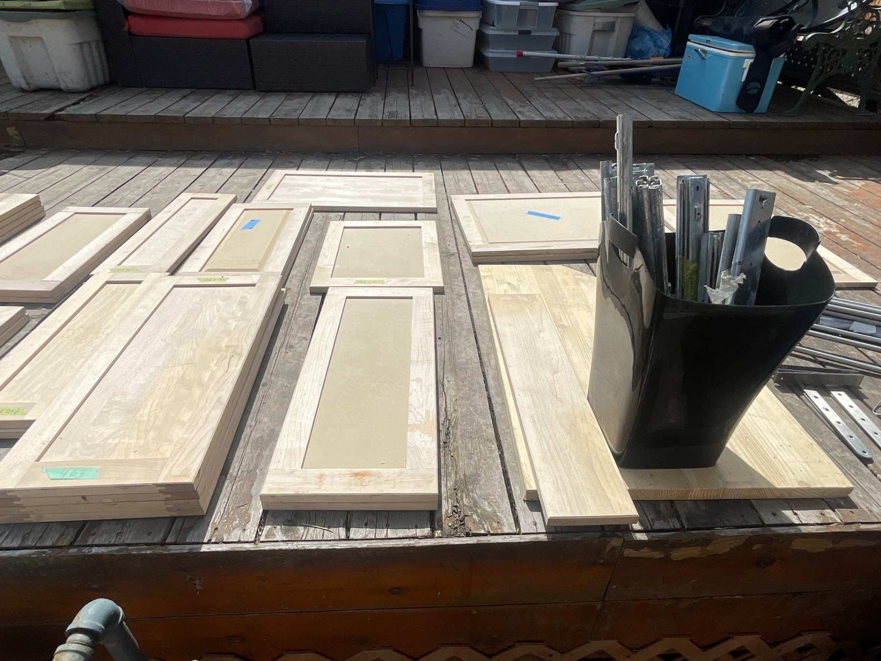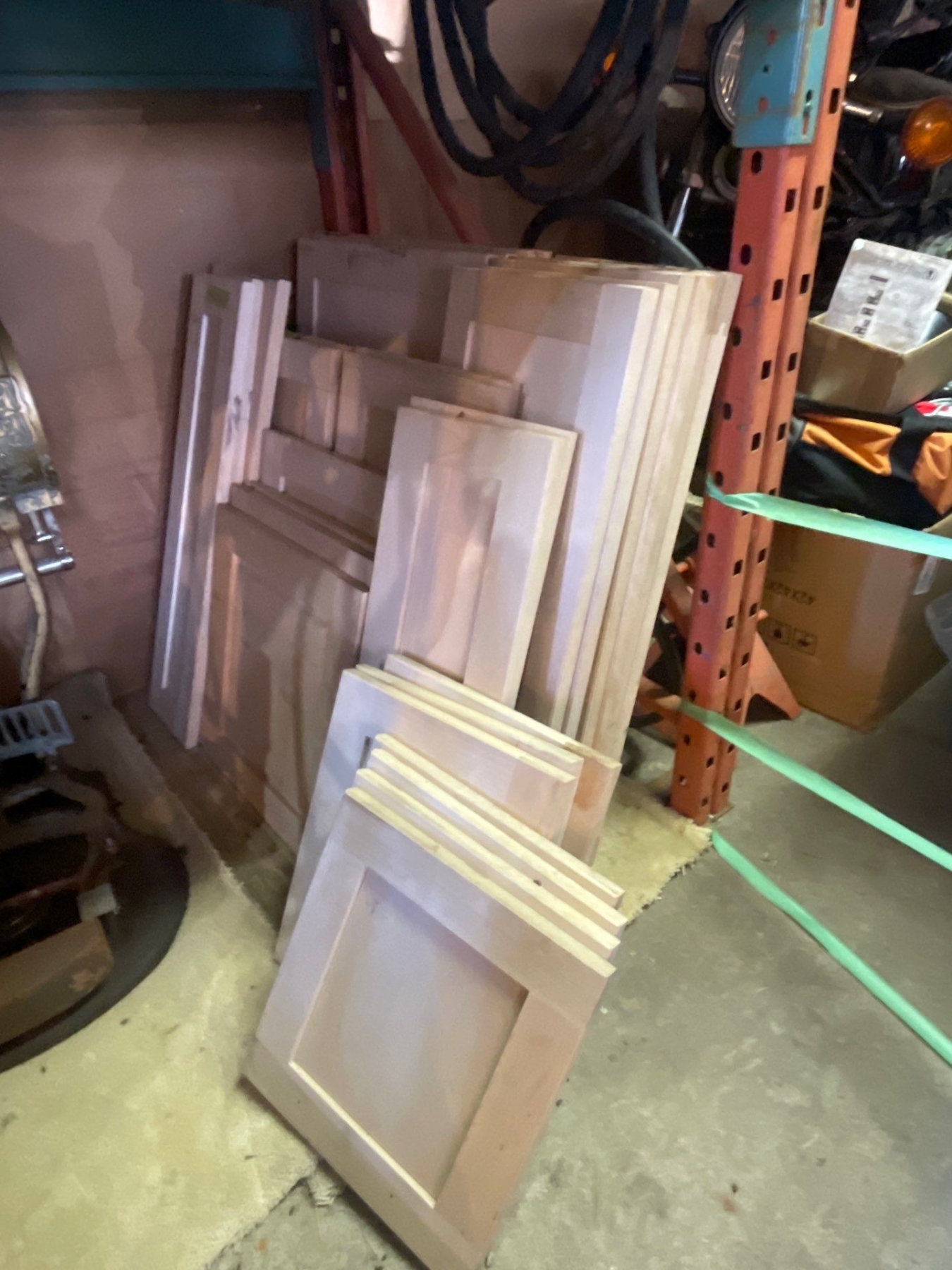 Wooden Cabinet Doors Various Sizes. Wood Frame MDF Insert Shaker Door 24"x17" 7/8"(4), 12"x26" (2), 7"x30 1/8" (1), 12"x13 3/8"(4), 26 1/8"x12"(2), 15 7/8"x21" (1), 30"x22.5" (2), 29 7/8"x12"(2), 30"x19"(1). Wood Shaker Doors 30"x18 3/4" (1), 11 3/4"x15" (3), 15"X18"(2), 15.5"x17" (1), 8.5"x25 3/4" (2), 13 1/4x30 (4), Drawer Front 6x29 7/8 (1), Slab and HD Accuride Drawer rslides 20"(10), 16" (4) , Ikea Kitchen Hanging System.