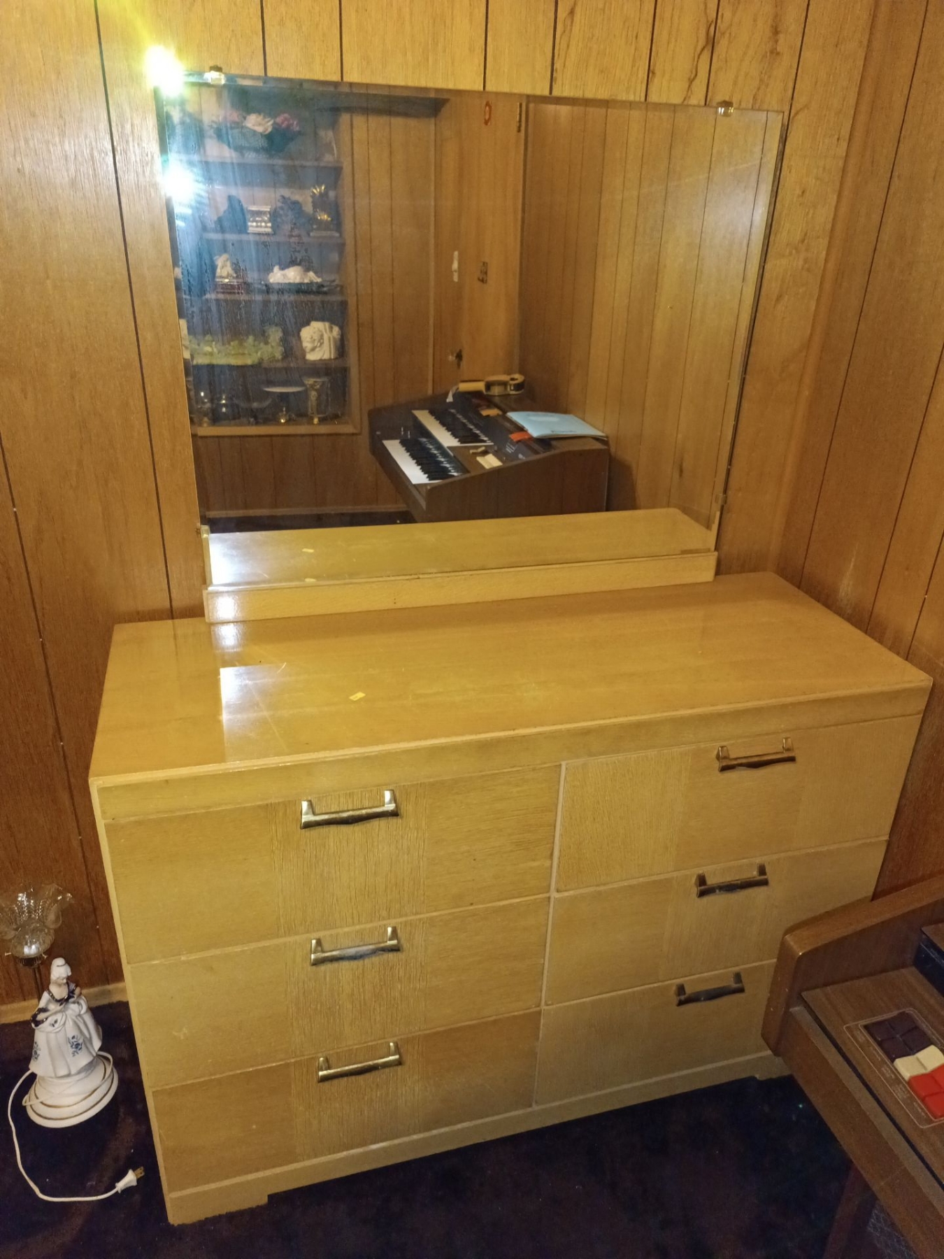 Wooden Dresser w/ Attached Mirror -- 48W, 18D, 64T