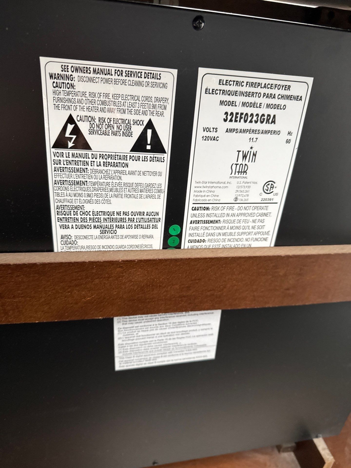 Wooden Electric  Fireplace Model No. 32EF023GRA, 64W, 18.5D, 41T