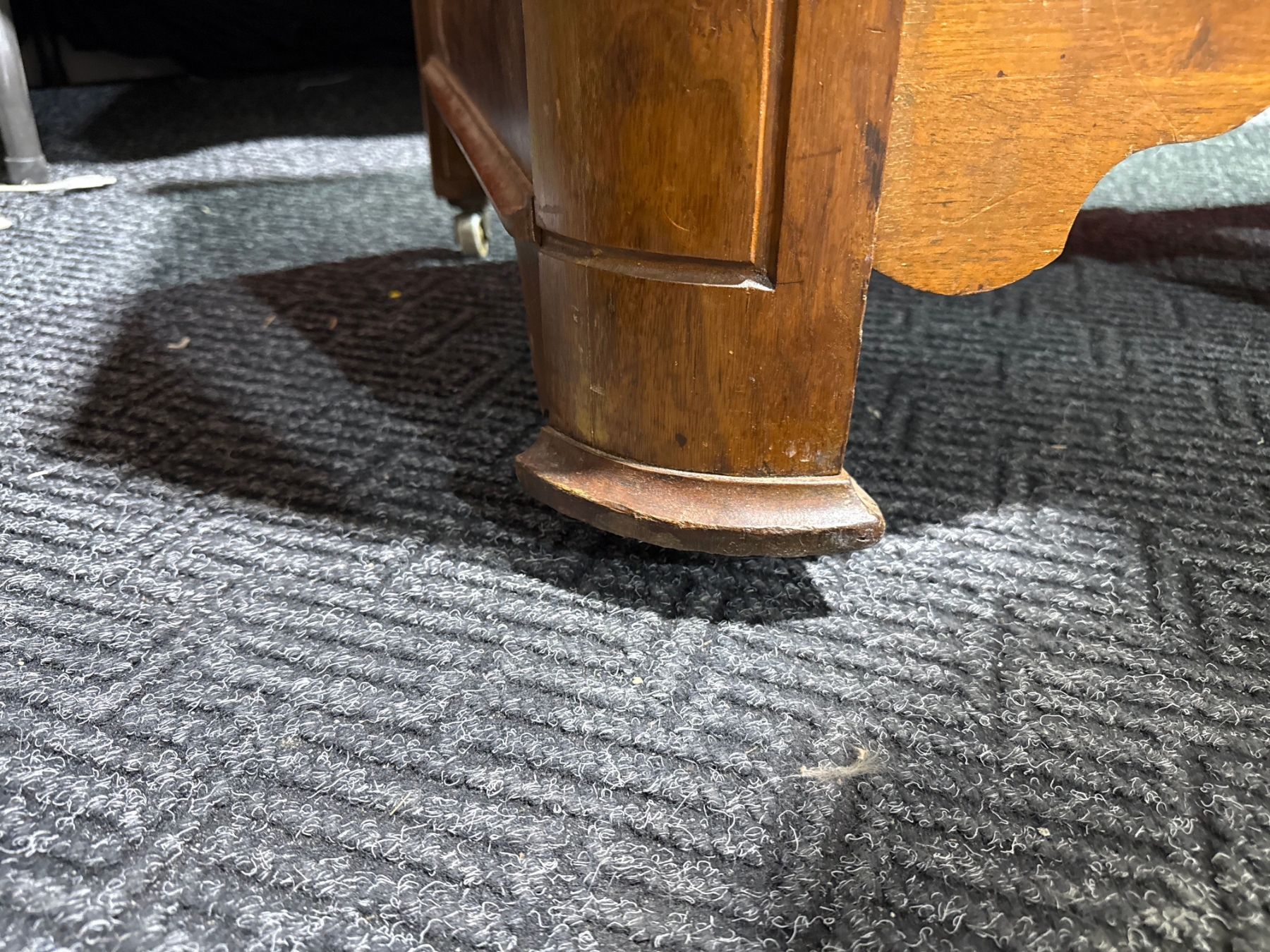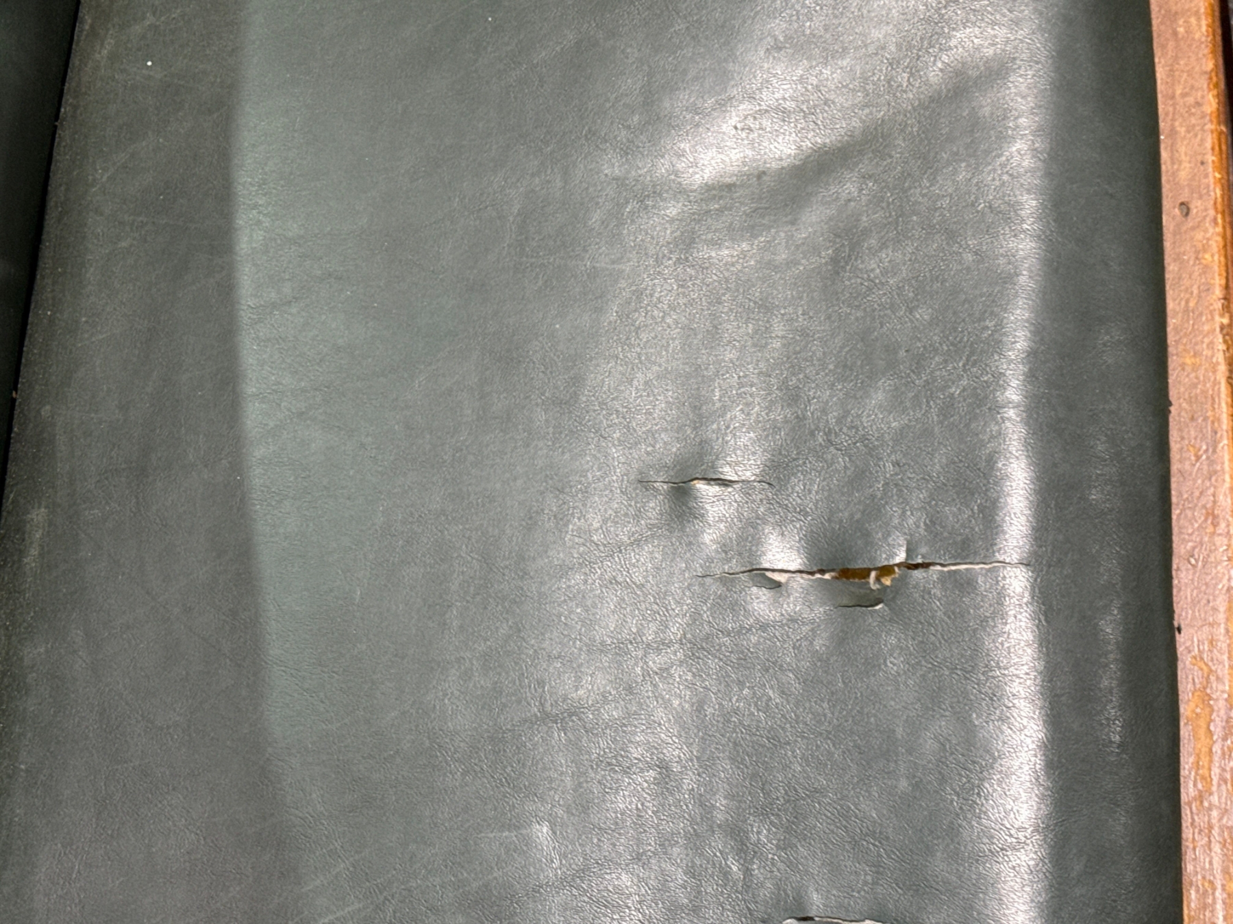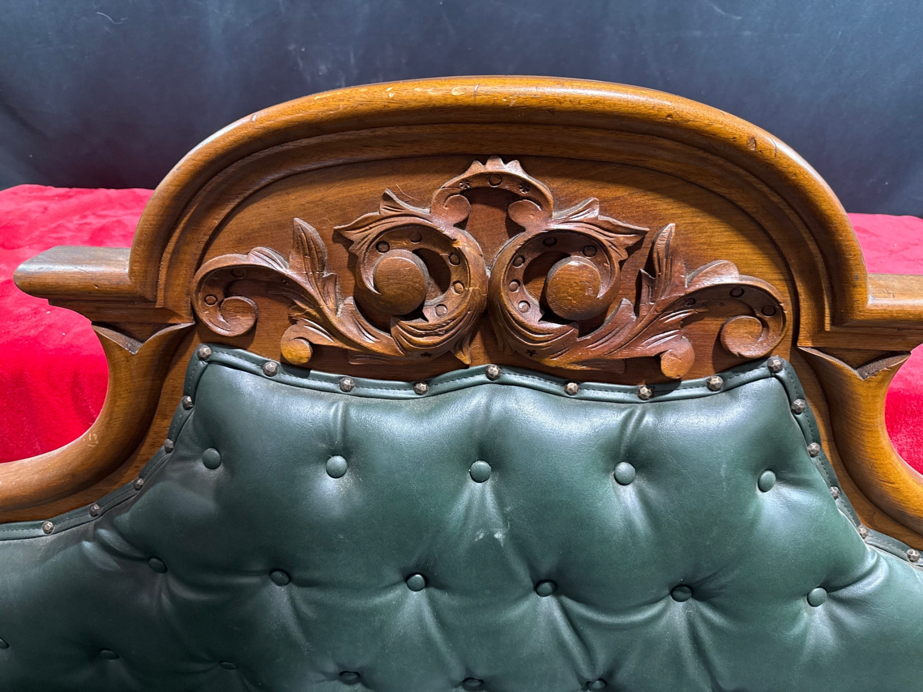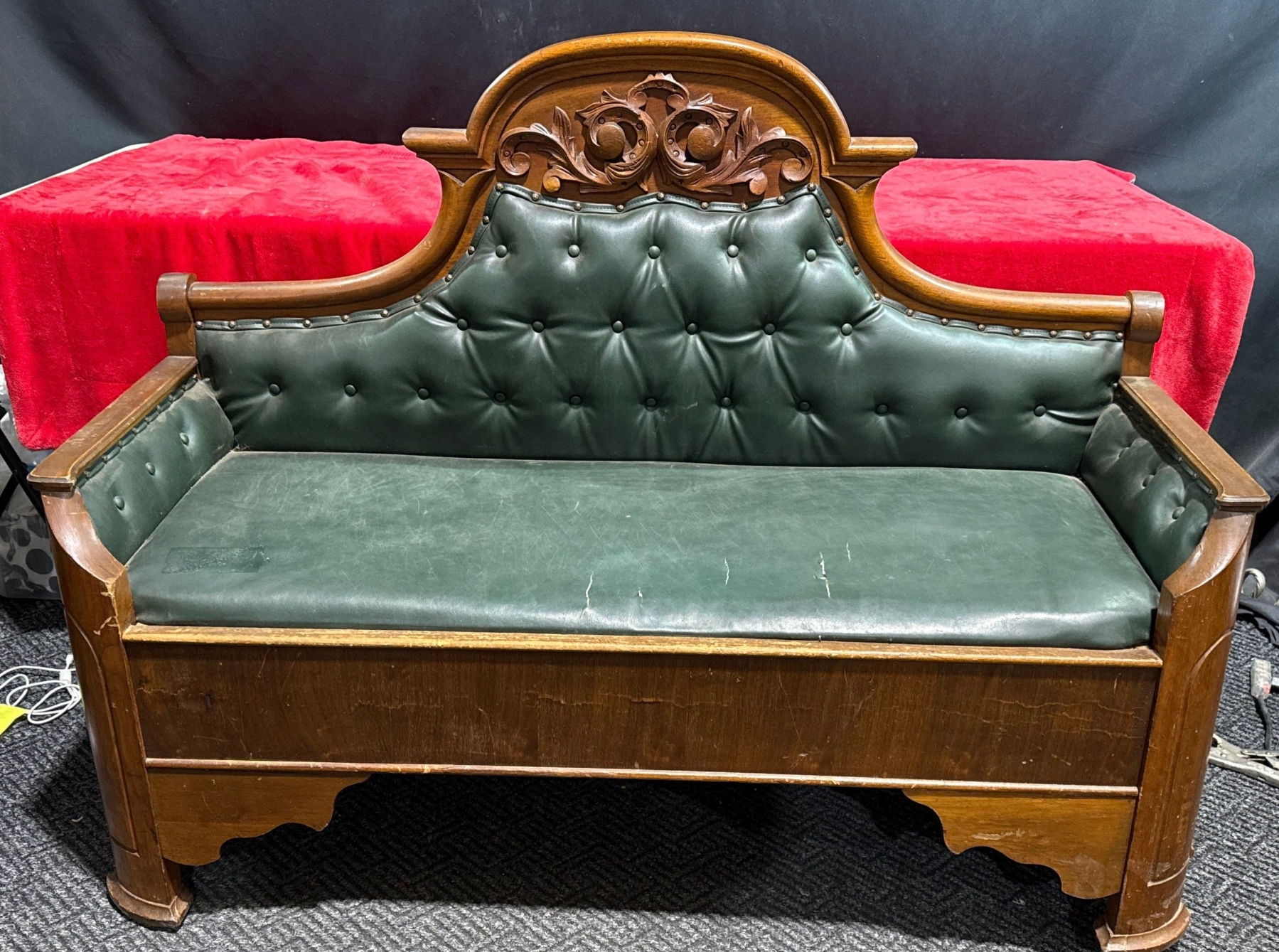 Wooden Green Leather Rolling Bench (52Wx20Dx40.5H seat 17H)