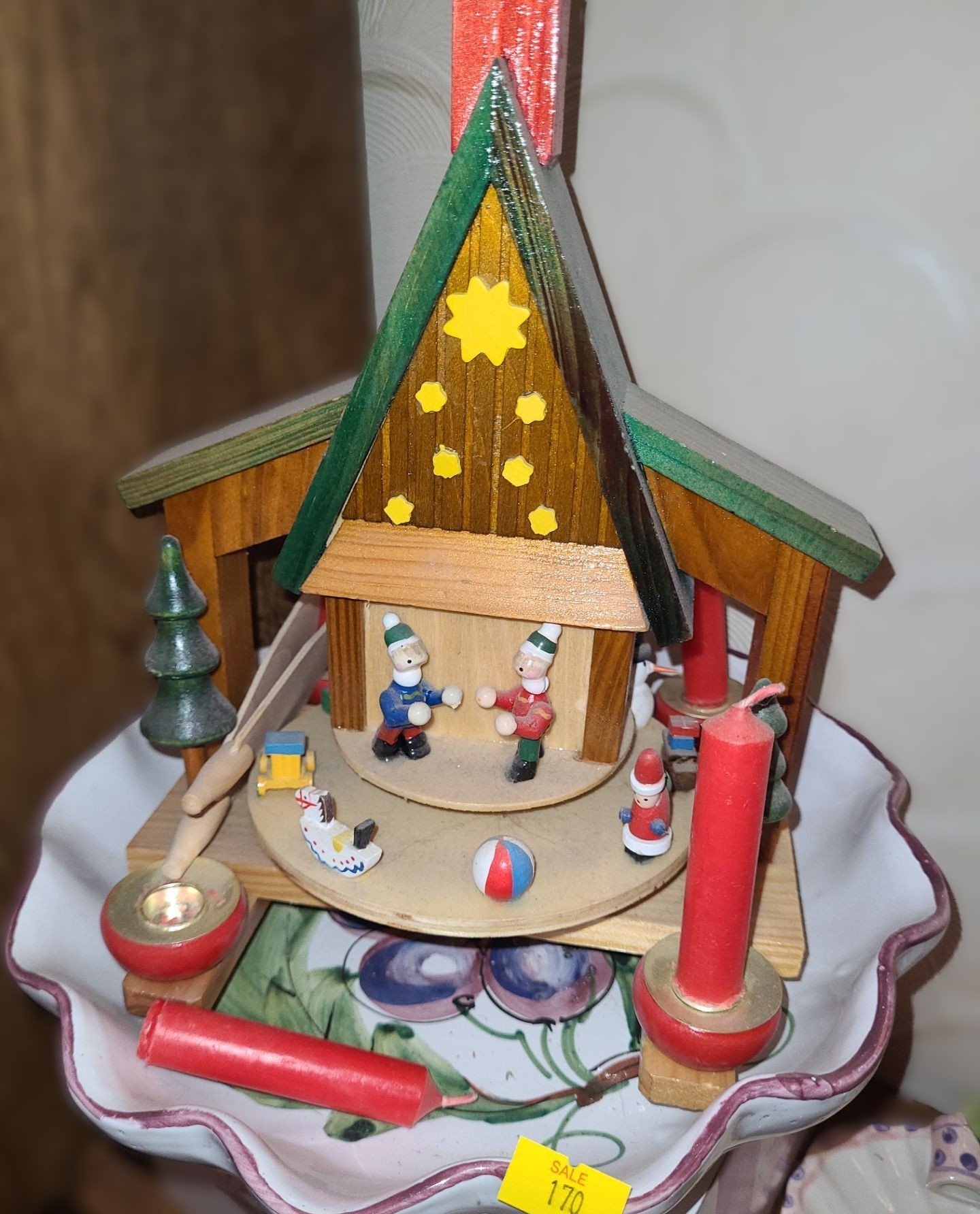 Wooden Holiday Decor 12 T, Glass Decor w/ Spotted Bowl 7 " Diameter, 8.5 T, Windchime and More!