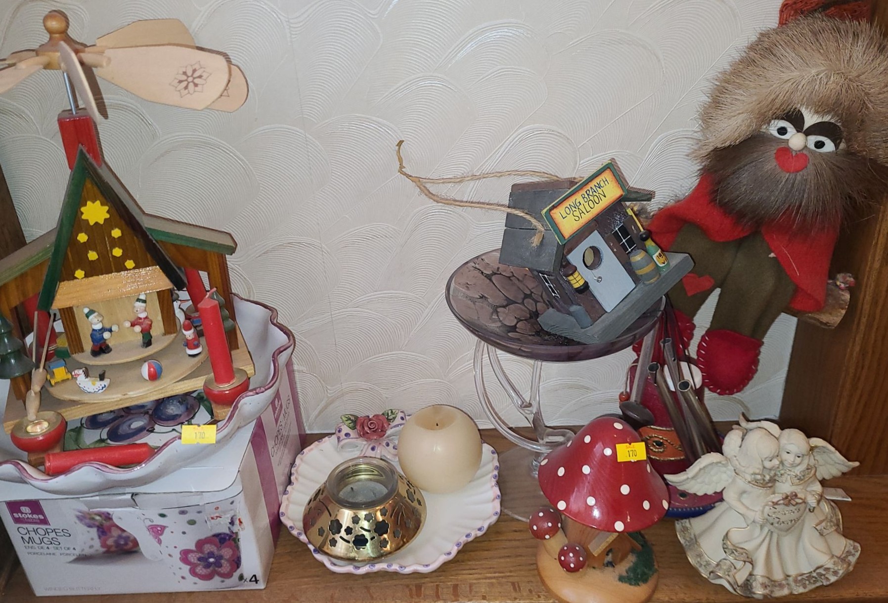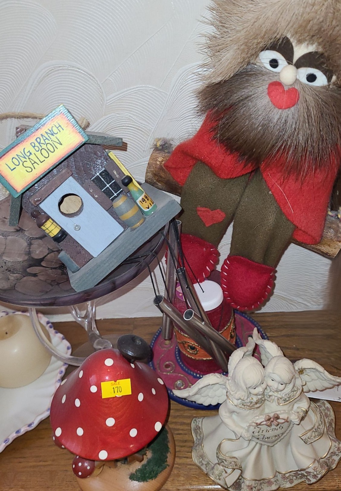 Wooden Holiday Decor 12 T, Glass Decor w/ Spotted Bowl 7   Diameter, 8.5 T, Windchime and More!