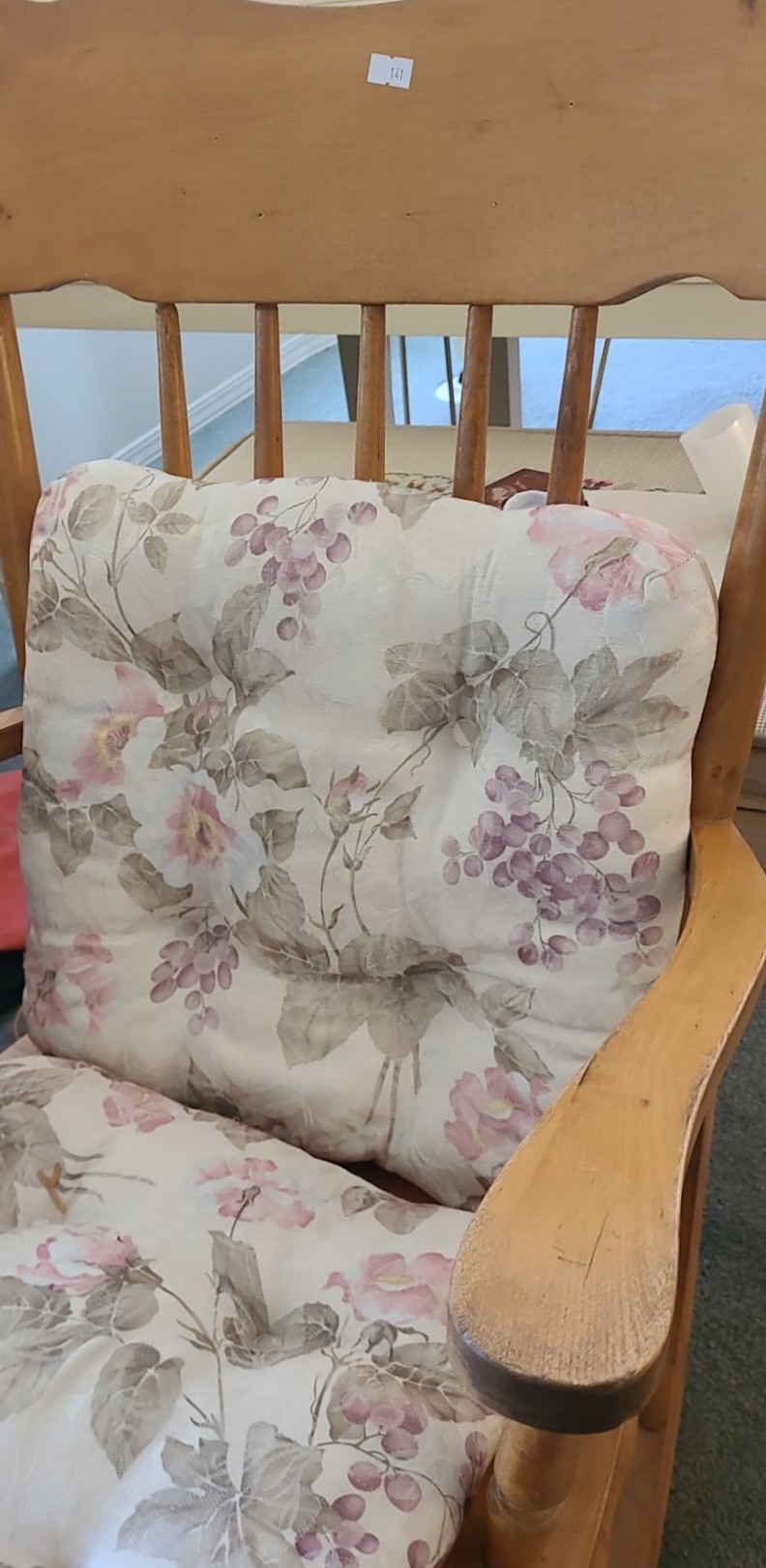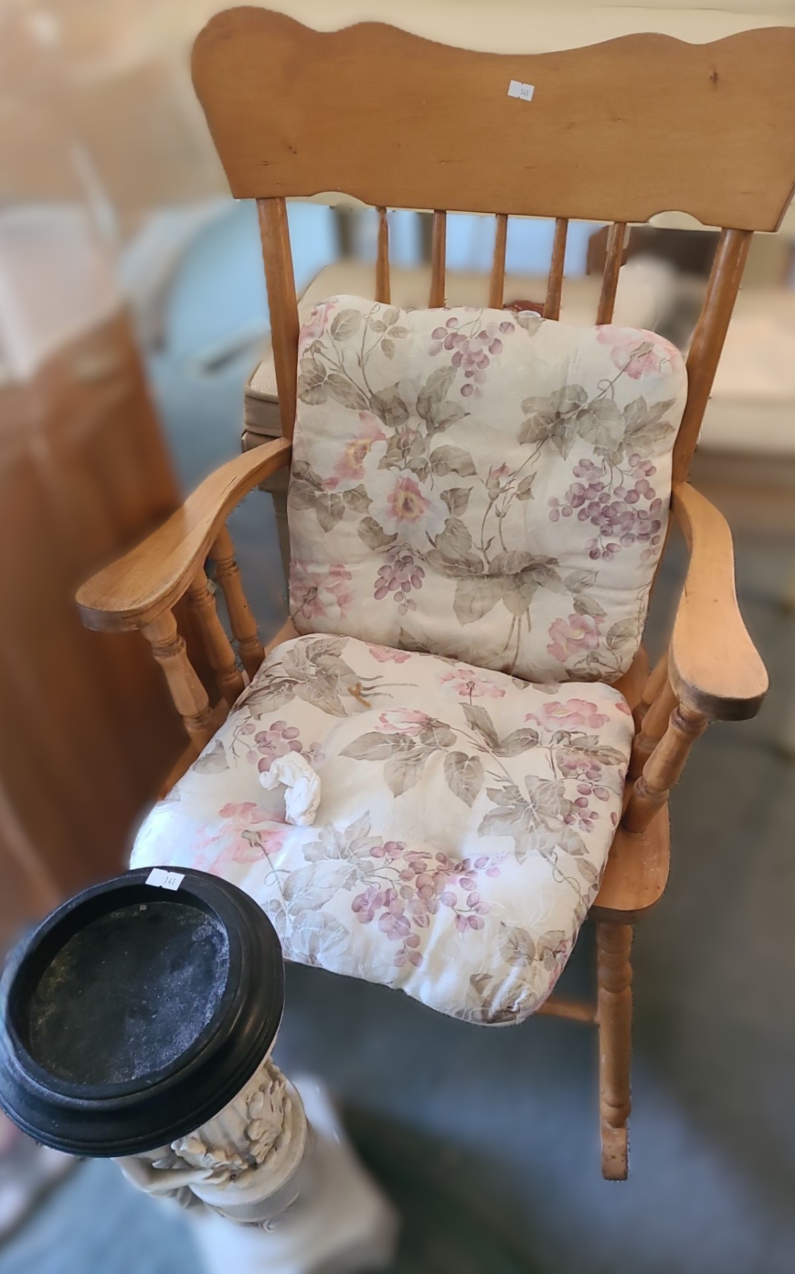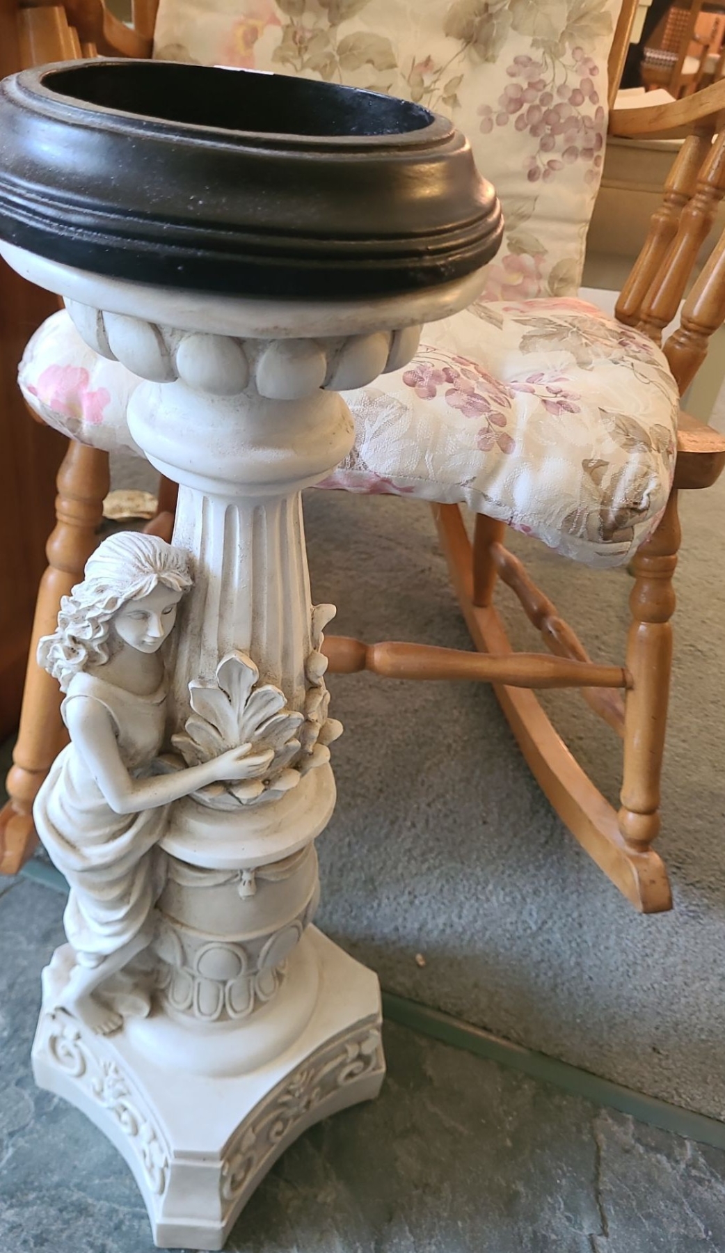 Wooden Rocking Chair 21.5 W, 32 D, 36 T and Resin Floor Ashtray/ Plant Stand 8 W, 8 D, 24 T