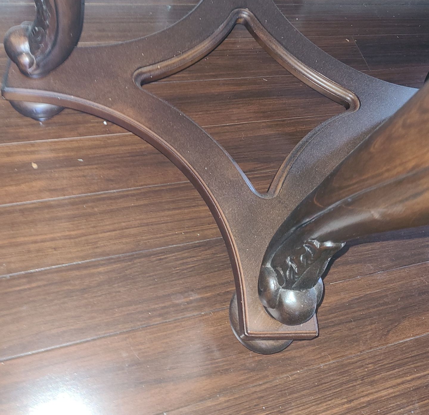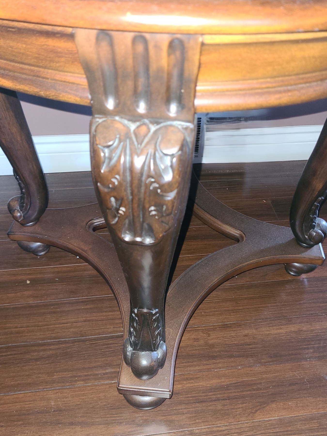 Wooden Side Table w/ Glass Insert Top and Scroll Design 28  Diameter Top, 26 T (2nd)