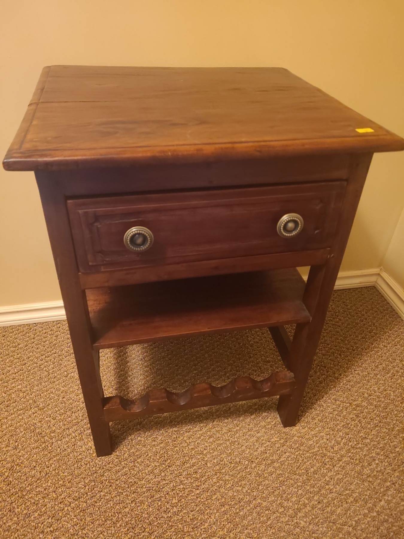Wooden Side Table with Shelf and Drawer (20"W, 18"D, 27"T)