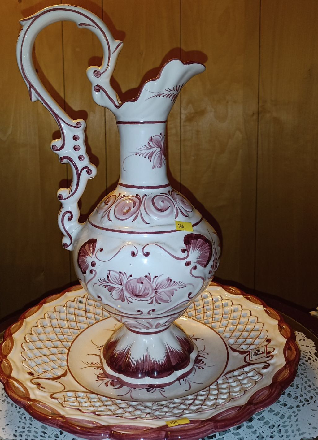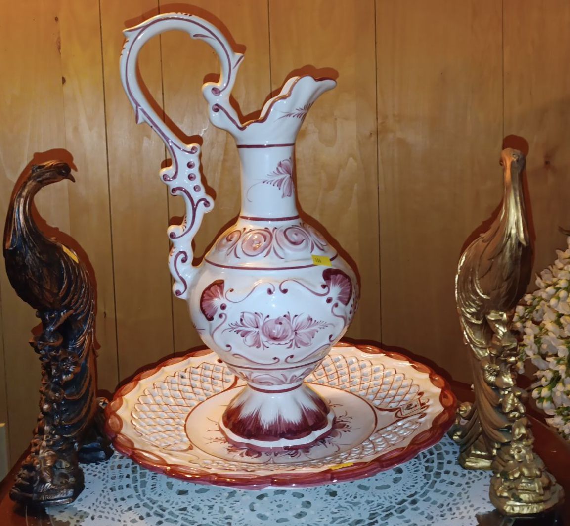 Wooden Stand w/ Large Pitcher and Decorative Bird Figures -- Stand is 26W, 22T