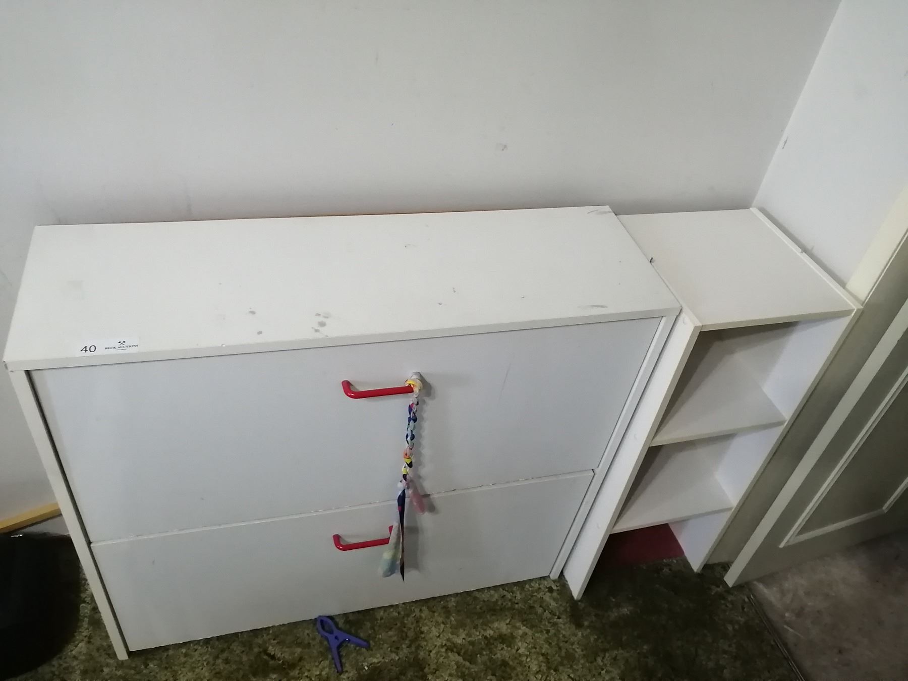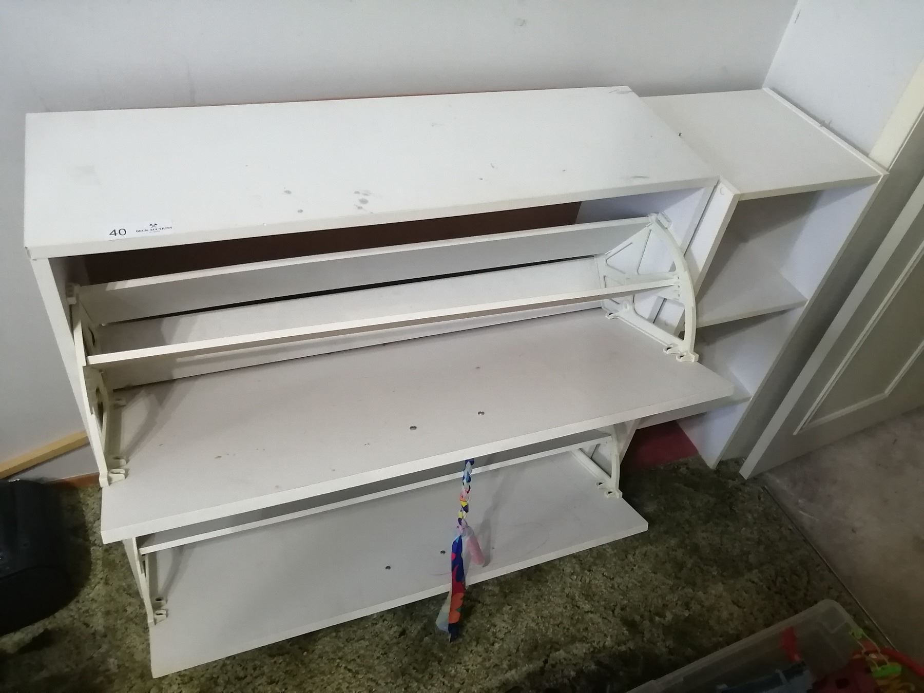 Storage unit (left) is 34" wide x 10.5" deep x 30" high