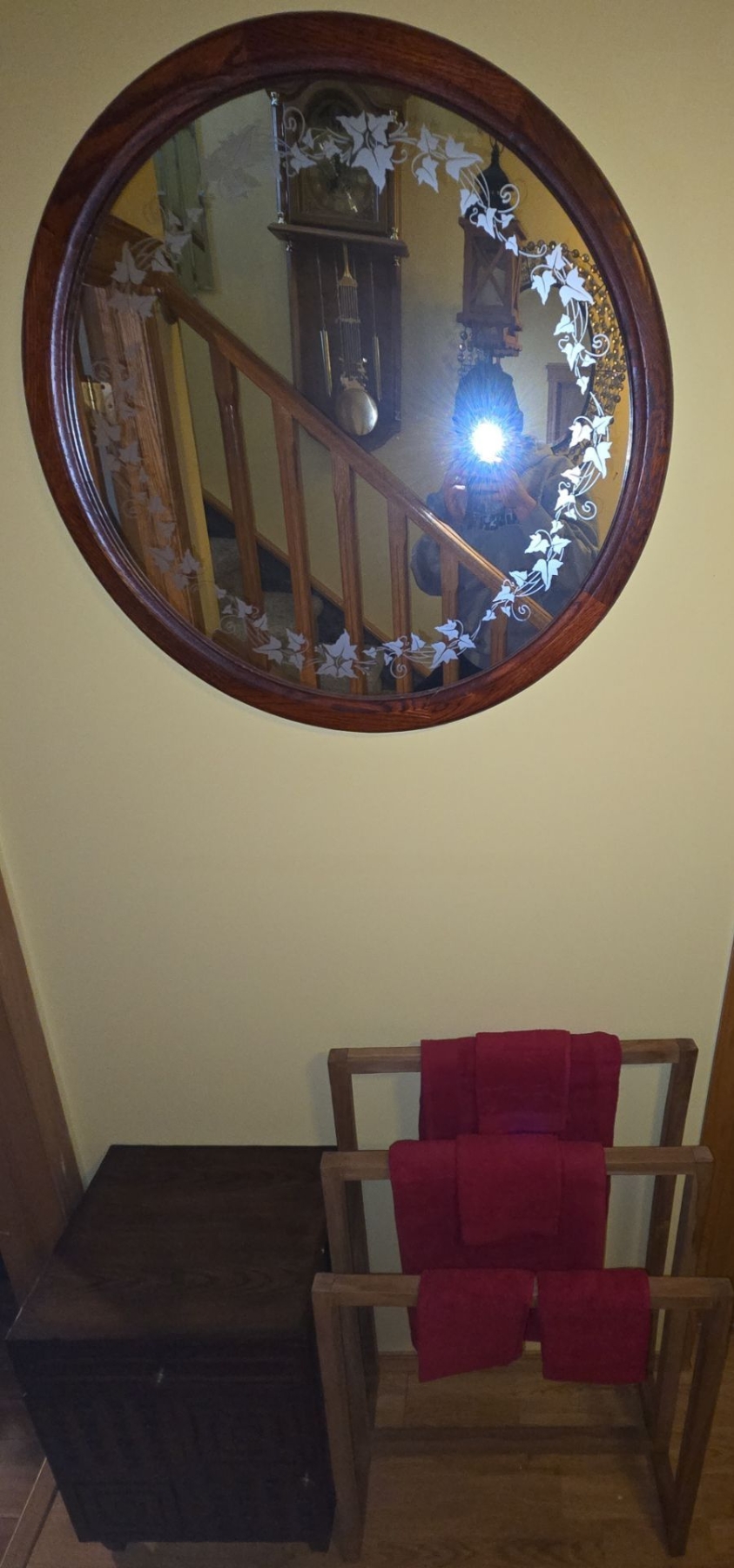 Wooden Towel Rack (36T) , Mirror (29W), and Small Cabinet (17W, 13D, 26T)