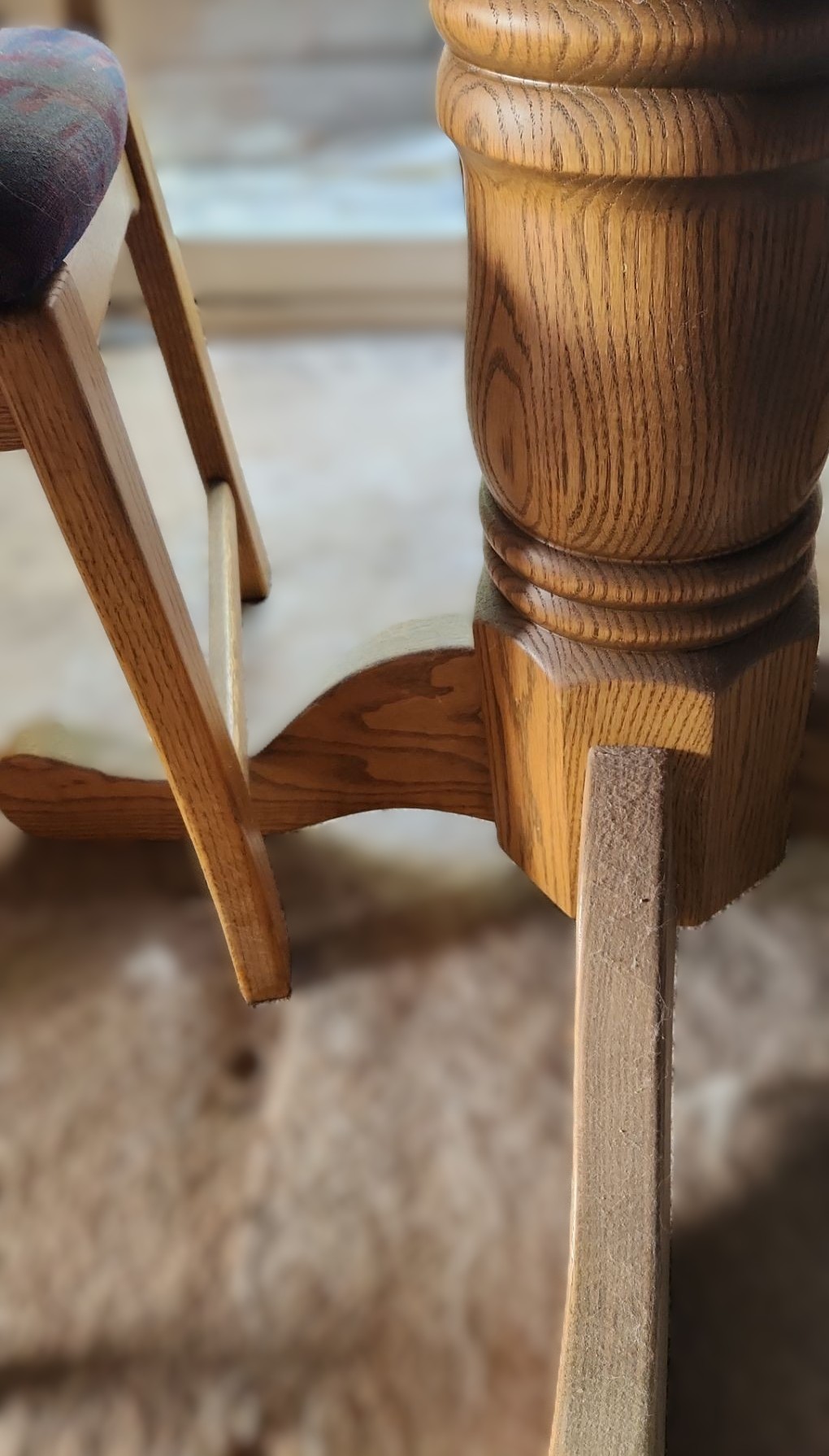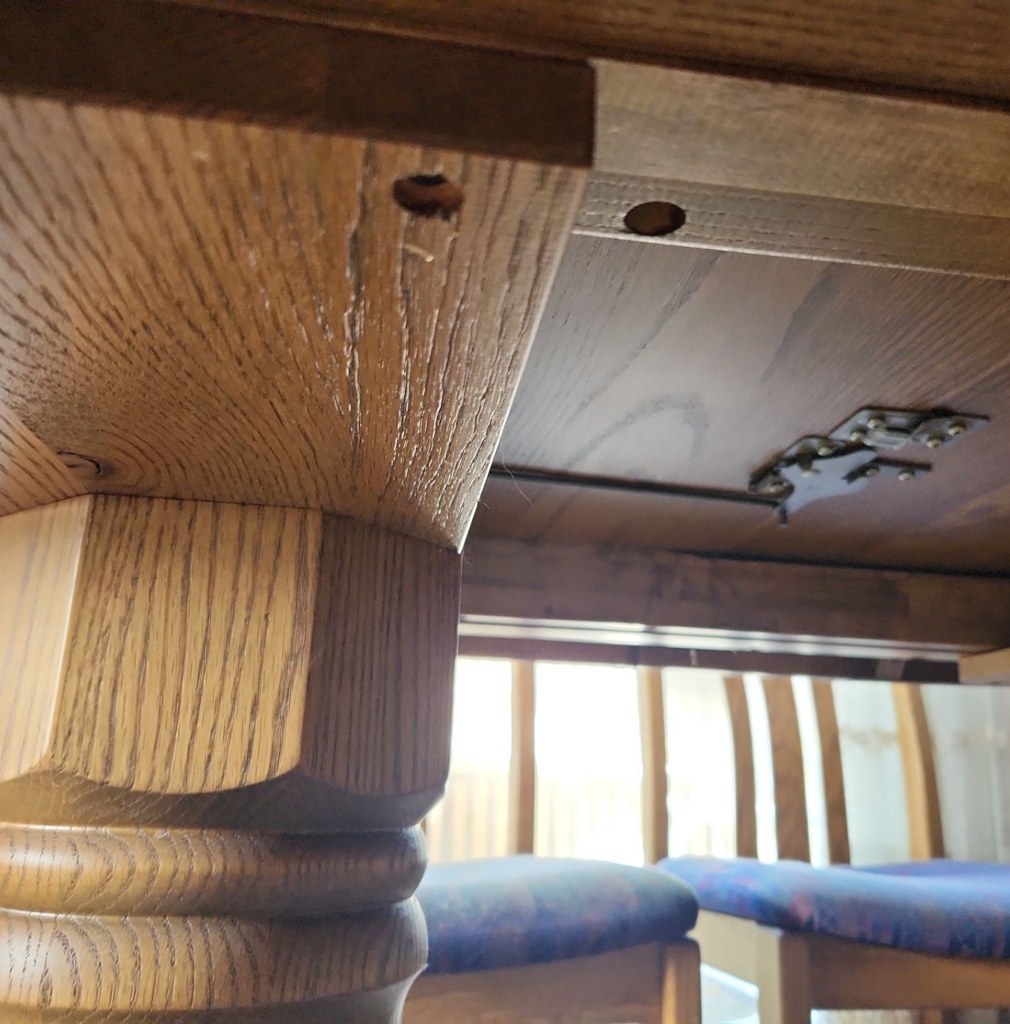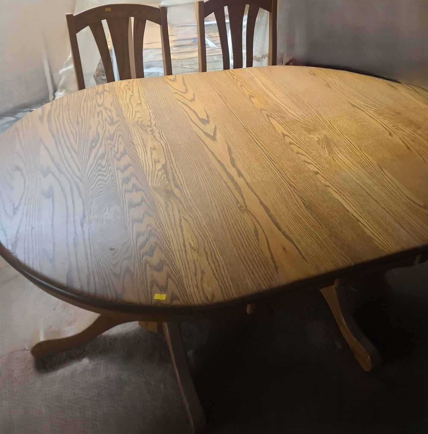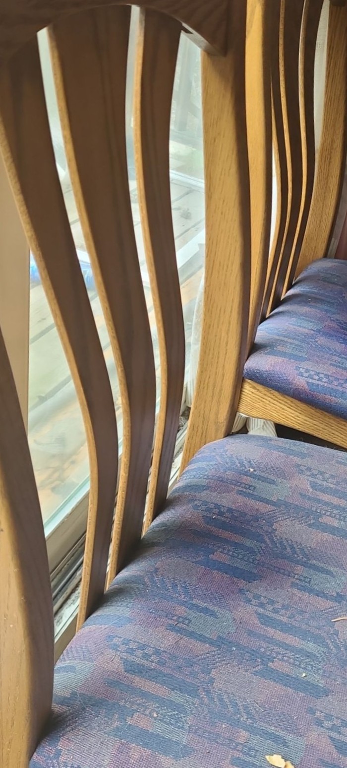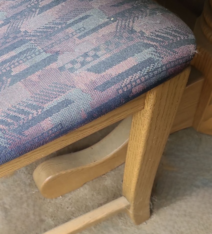 Some Scuffs and Scratches, Upholstery Shows Wear, 2 Leaves Included, Table Sun Faded More Than Leaves- Disassembly Required, Bring Tools and Assistance