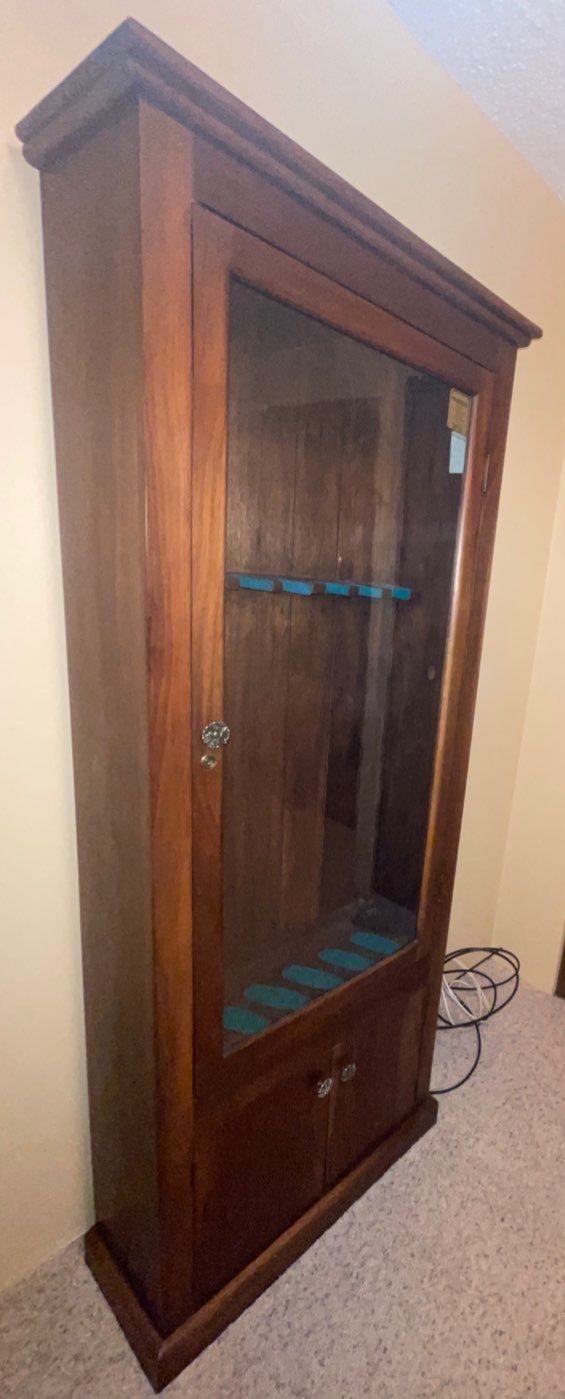 Wooden Vintage Gun Storage Display Cabinet w/glass door