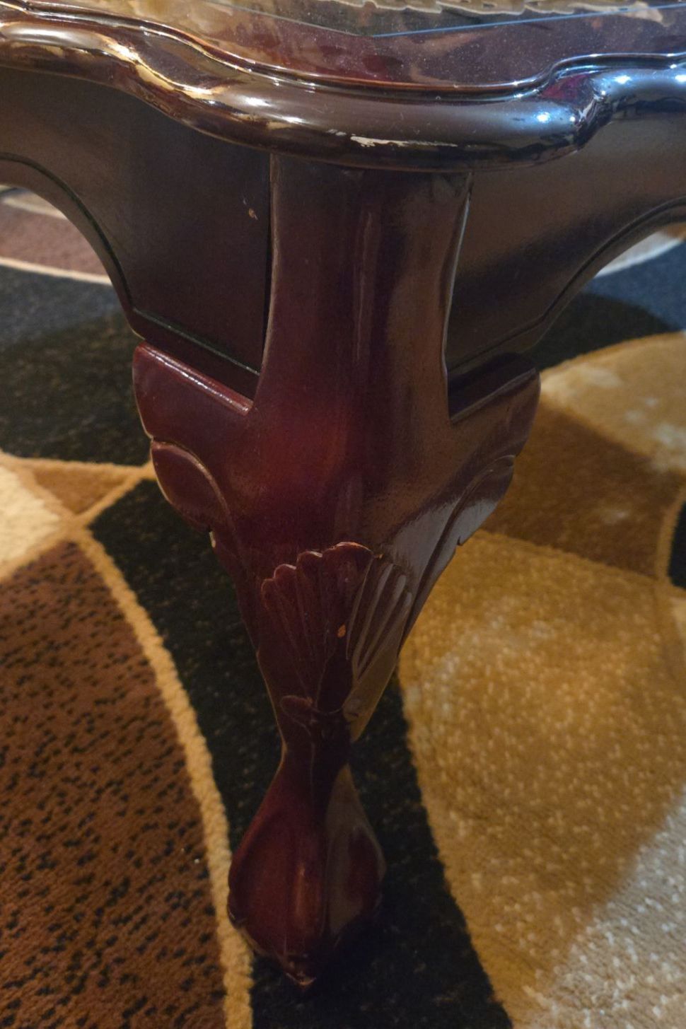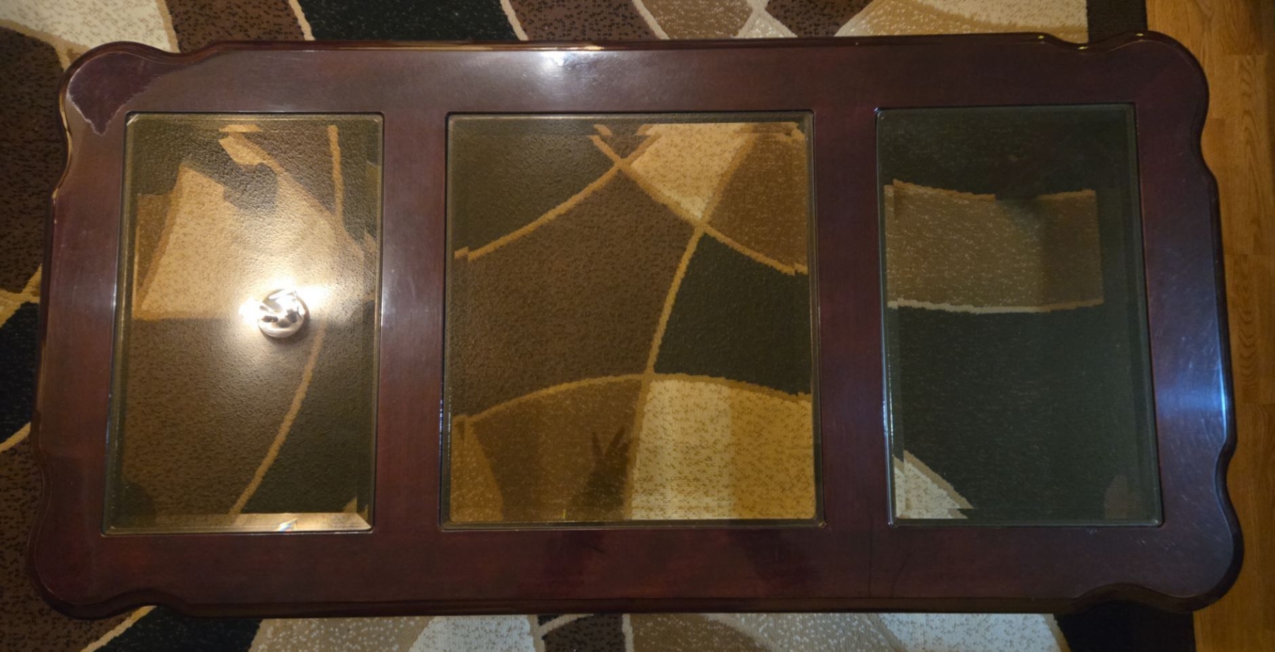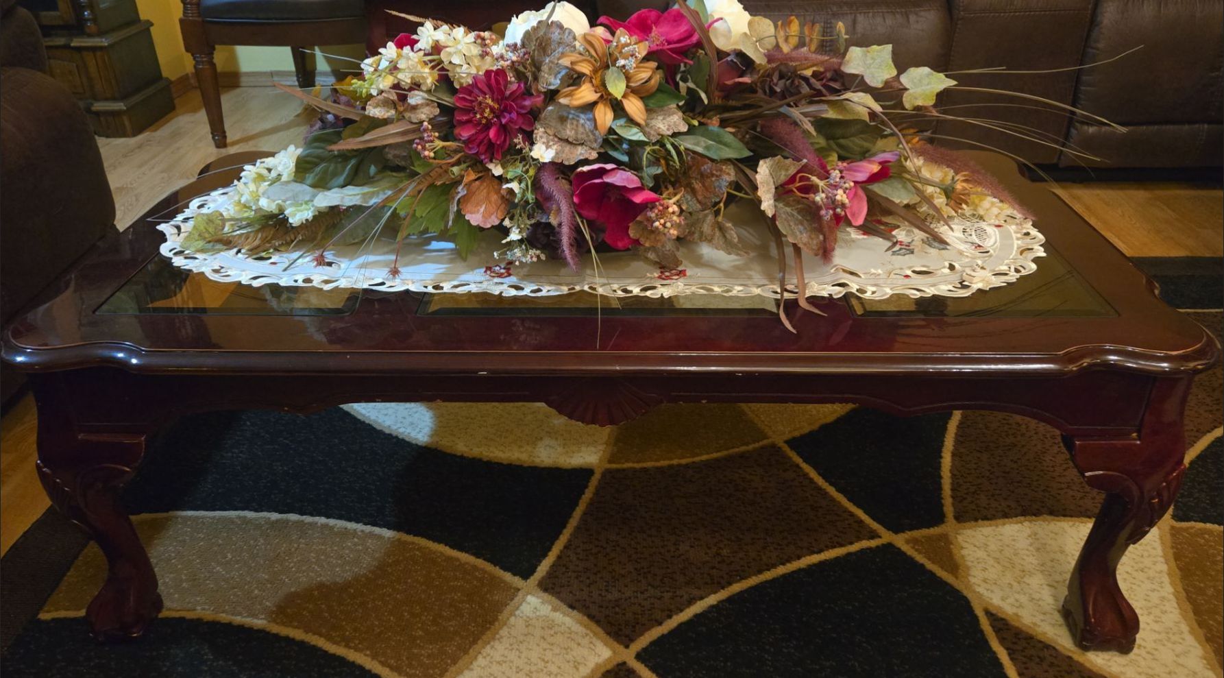 Wooden and Glass Coffee Table w/ Decorative Flowers - 48W, 25D, 16T
