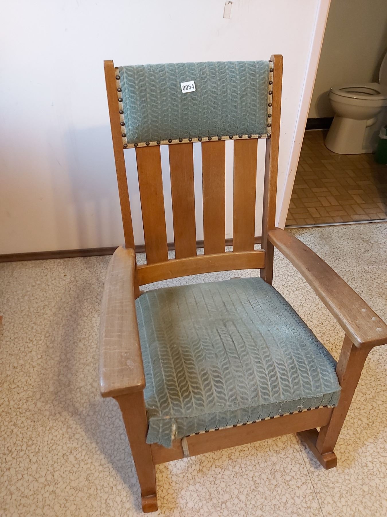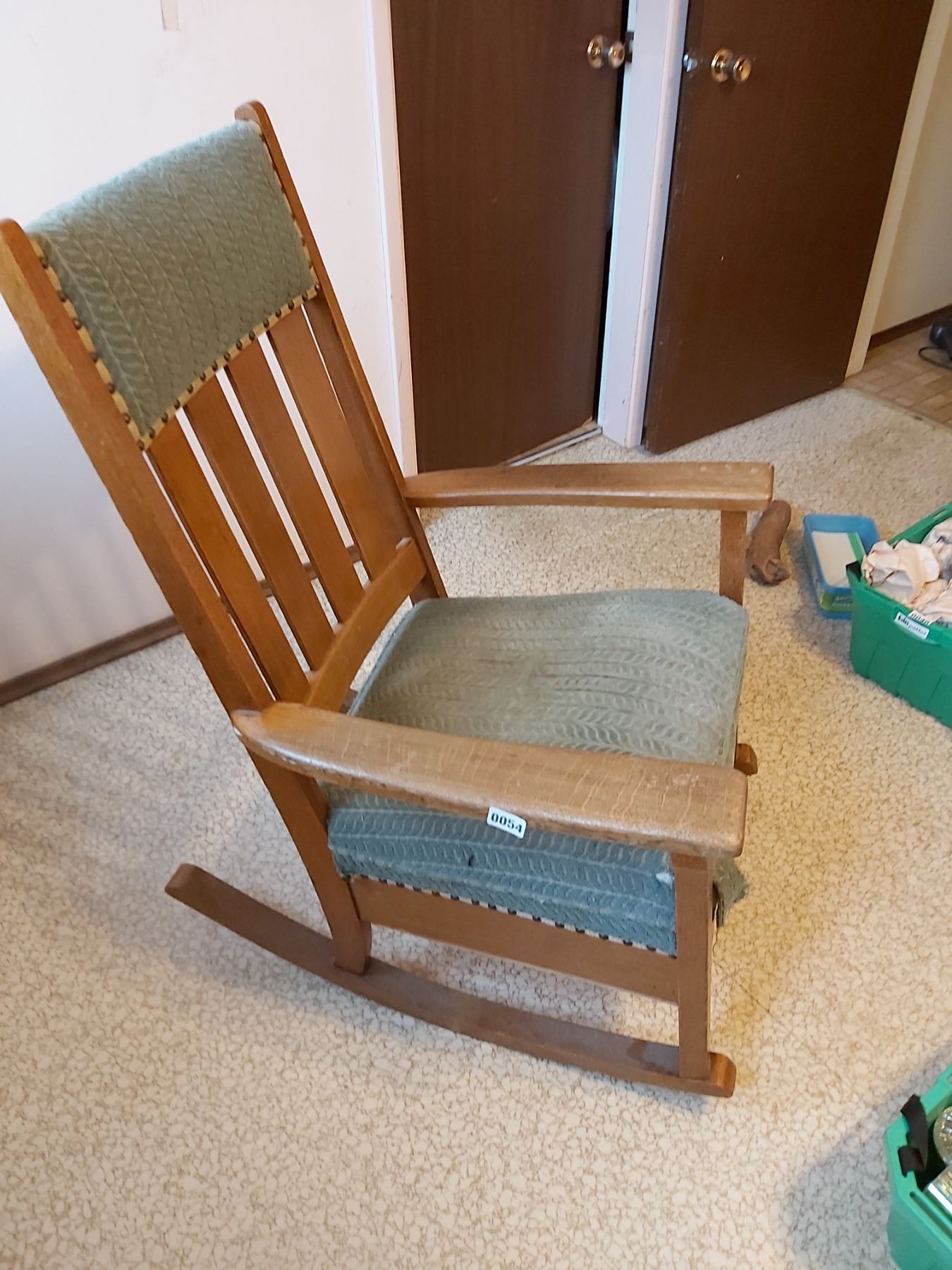 Wooden and upbholstered rocking chair