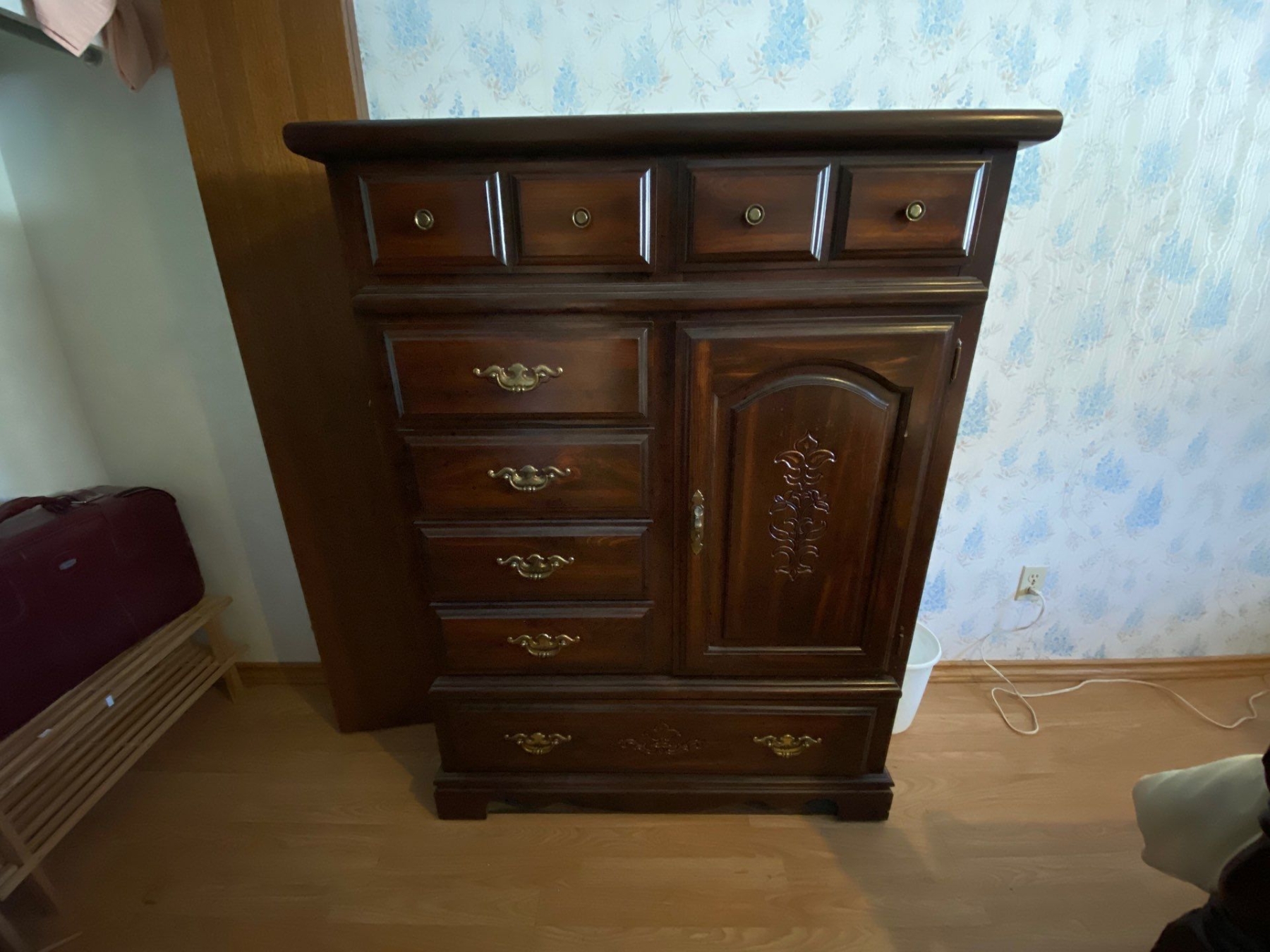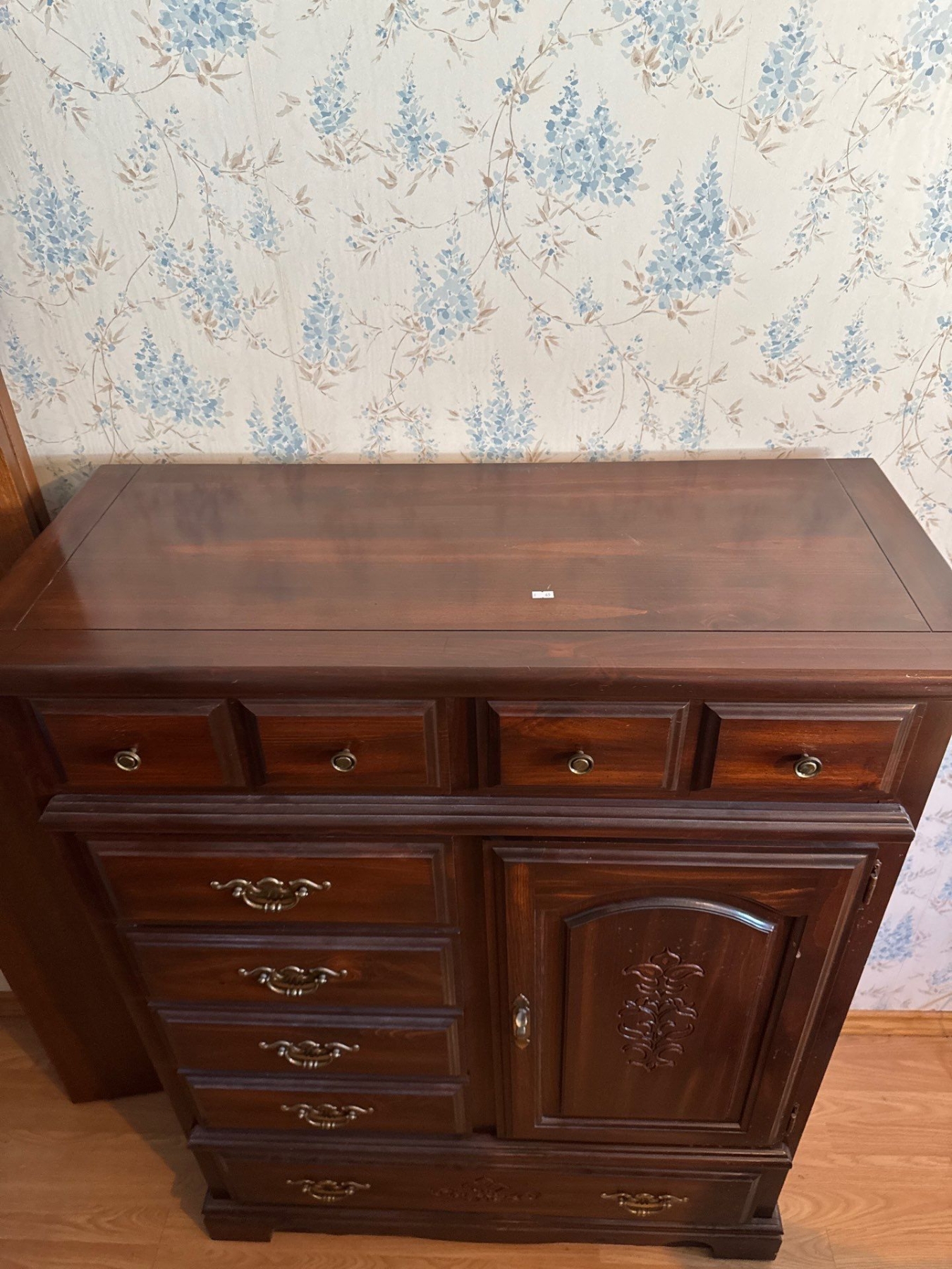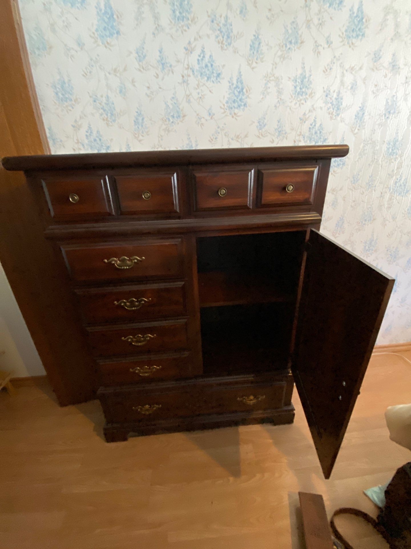 wooden dresser all contents included very nice 40 1/2 inches long by 17 1/2 inches by 53 1/4 tall deep