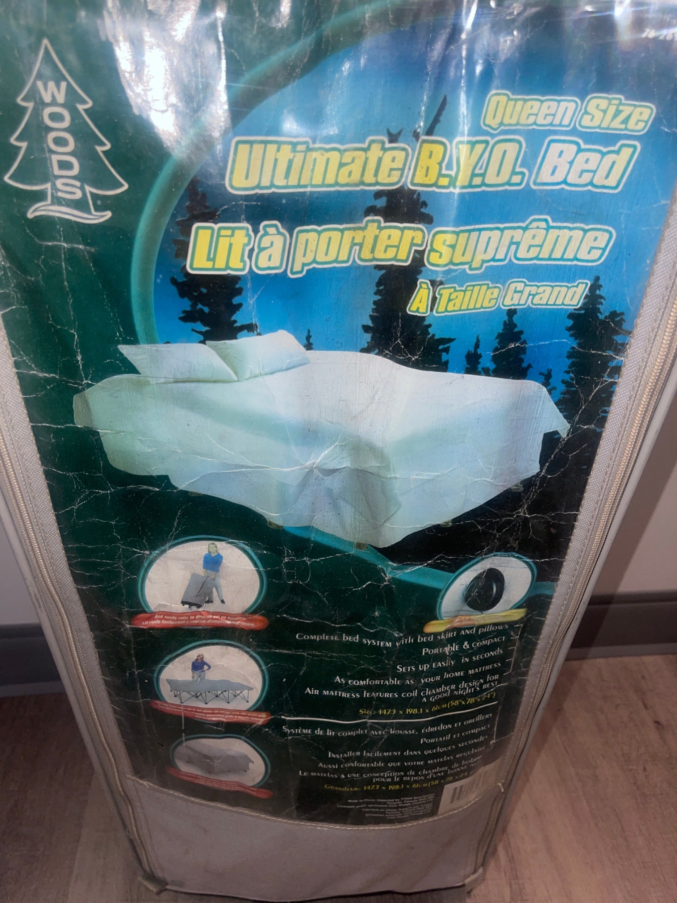 Woods Brands Queen Size Ultimate BYO Bed Blow Up Air Mattress Portable & Compact w/coil chambers 58"w x 78"d x 24"tall