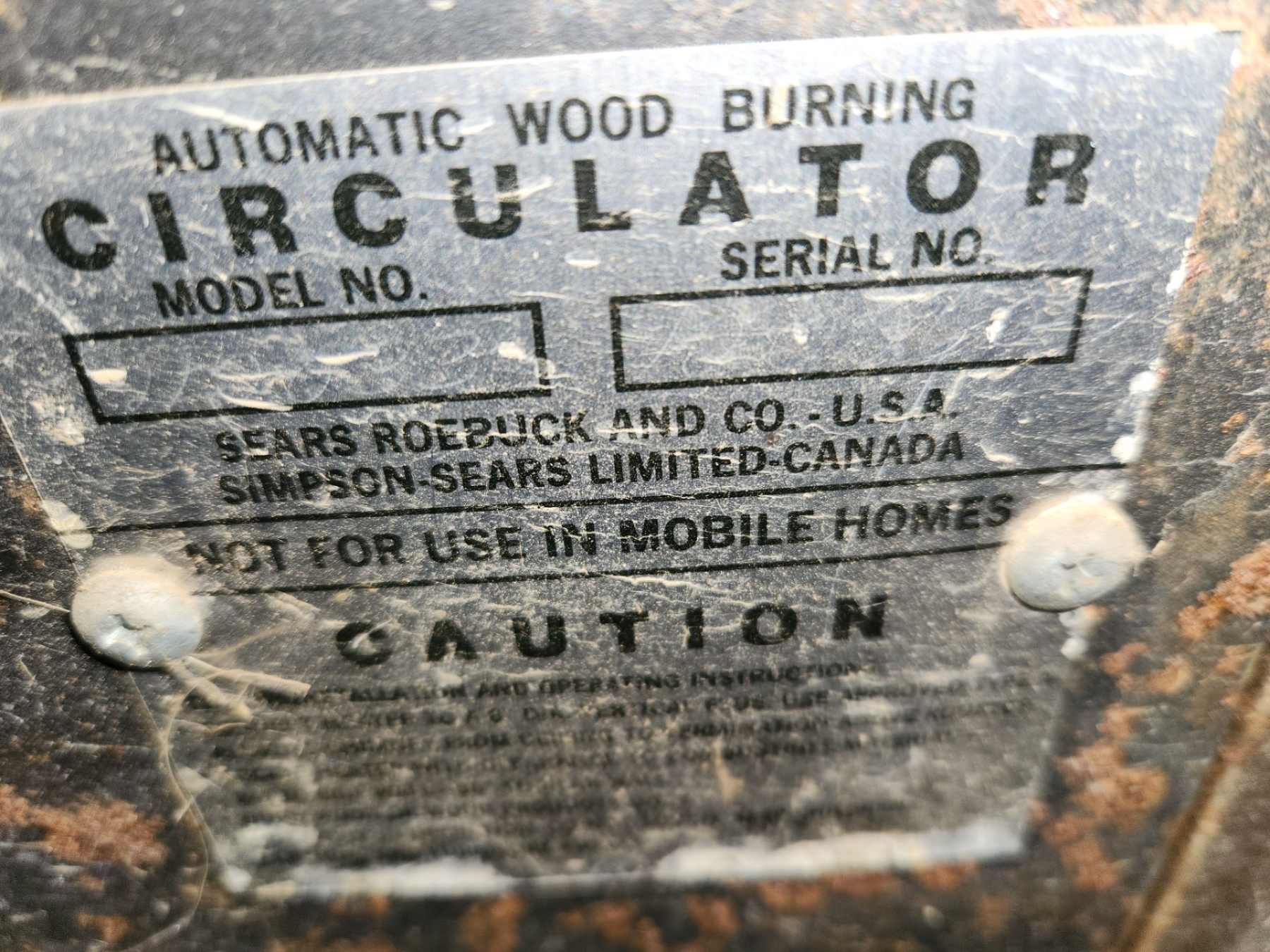Work Shop Heater- Sears Automatic Wood Burning Circulator- Cannot Read Model Number, Currently Uninstalled, Very Heavy, Bring Assistance