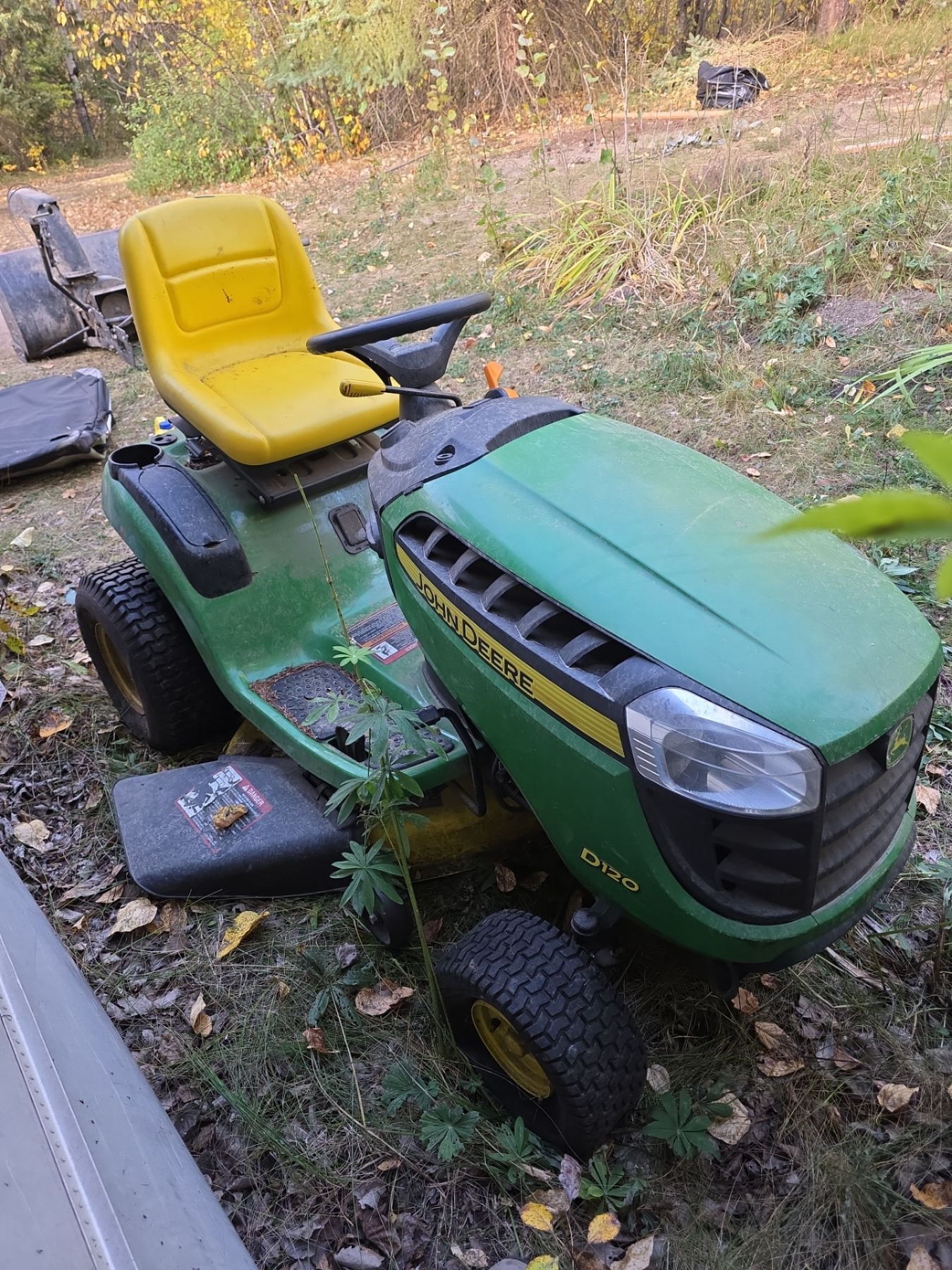Working John Deere D120 Lawn Tractor, Runs, Drives, Mows. Will Need Battery & Front Tires