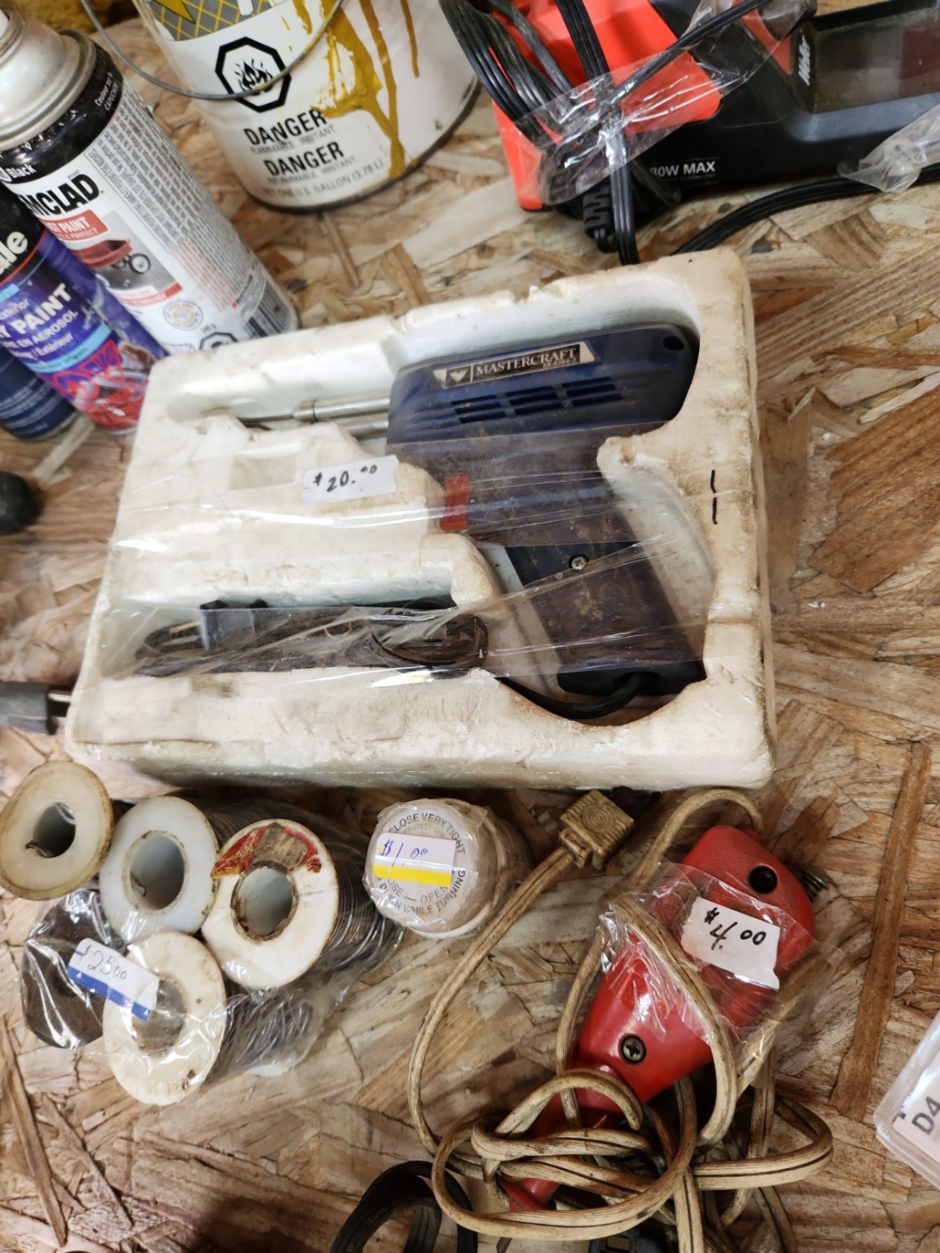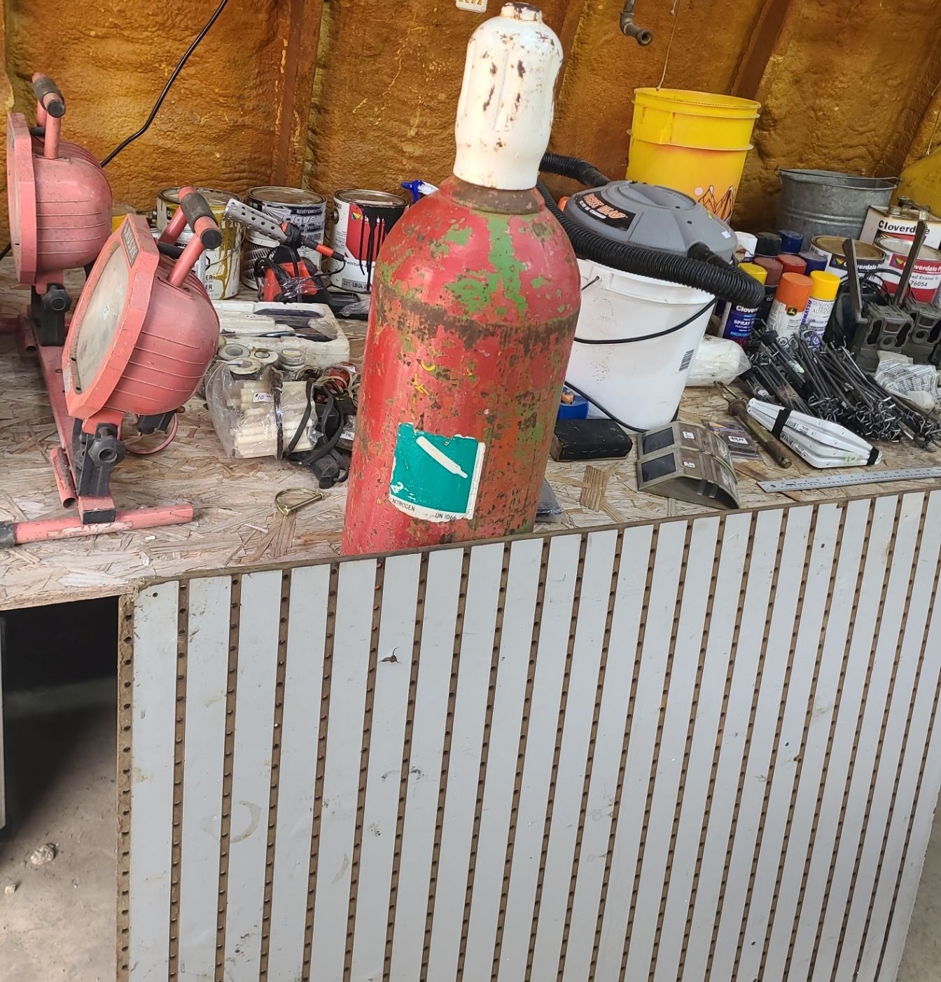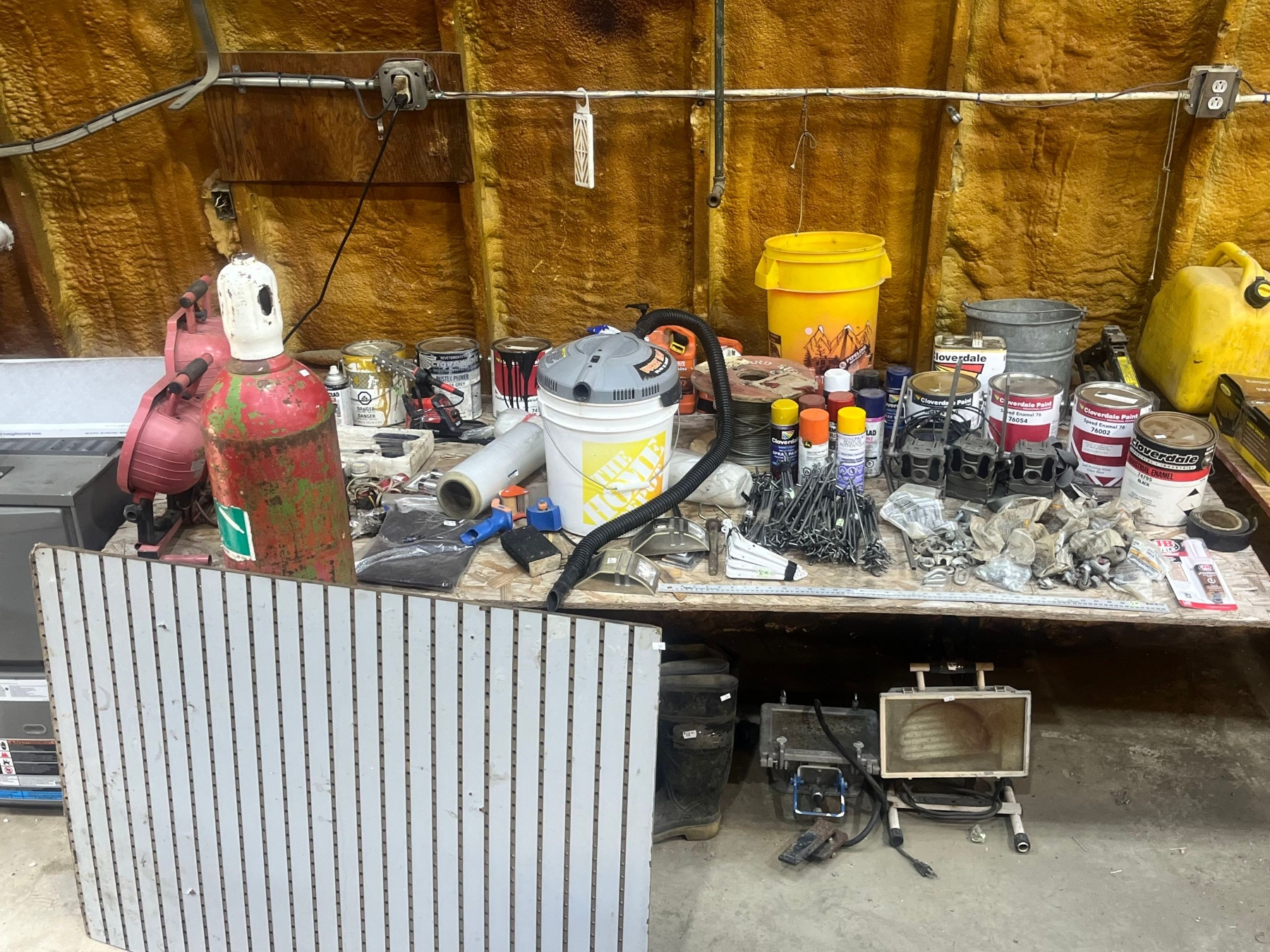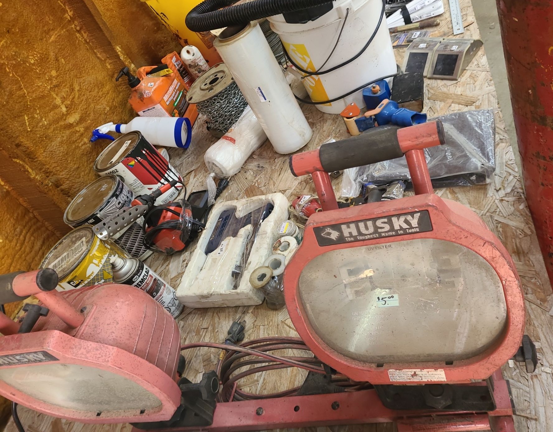 Worklights, Nitrogen Canister, Buckethead Wet/ Dry Vac, Rubber Boots Folding Table & more