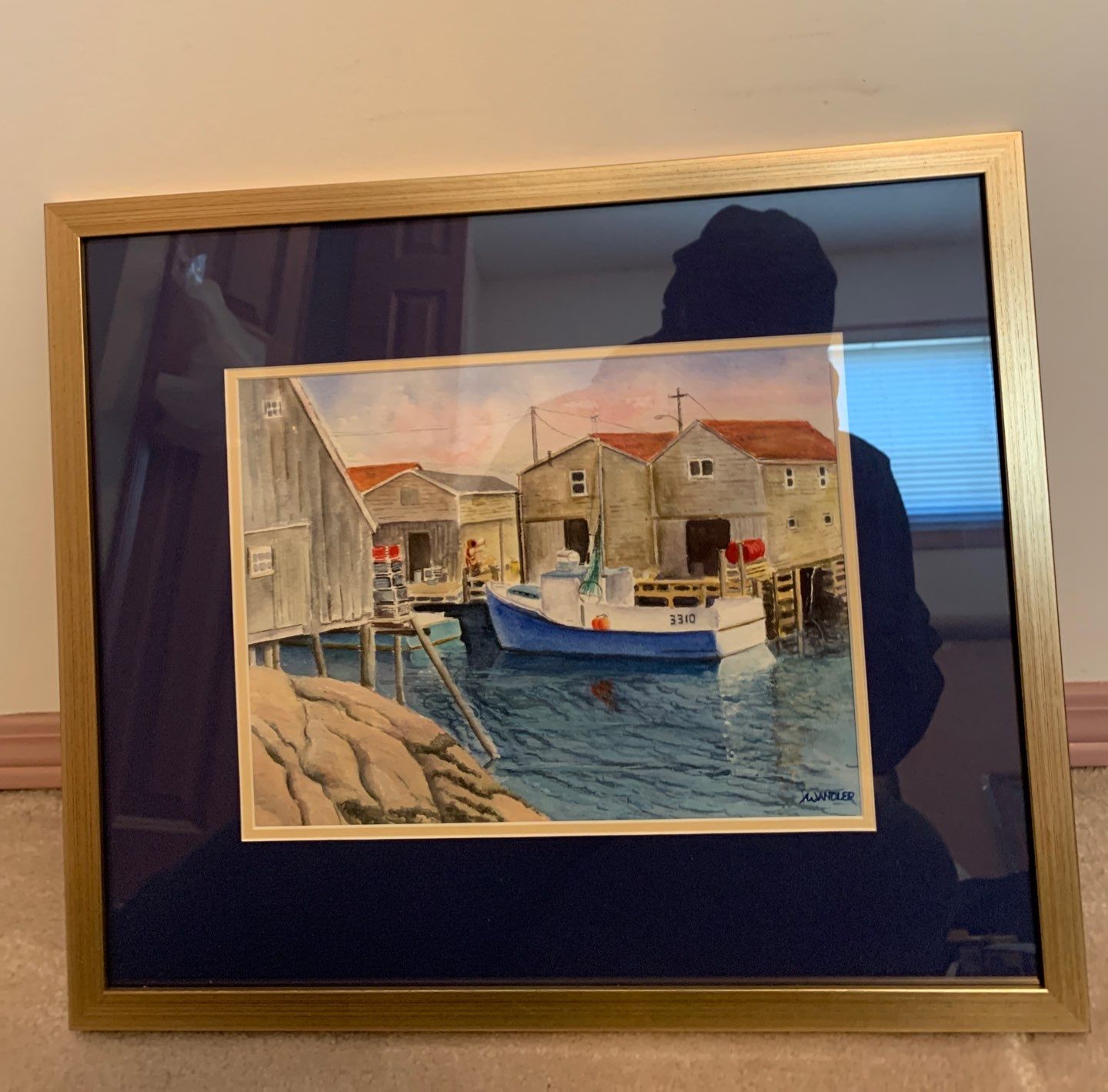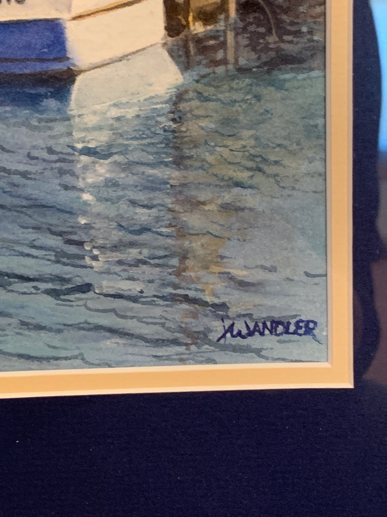 X. Wandelor Marina Watercolor Art 18x15 Landscape