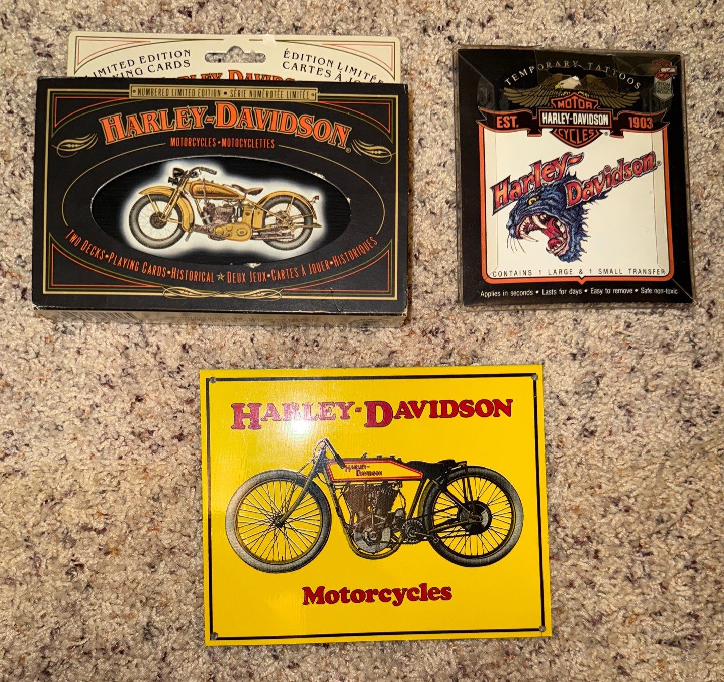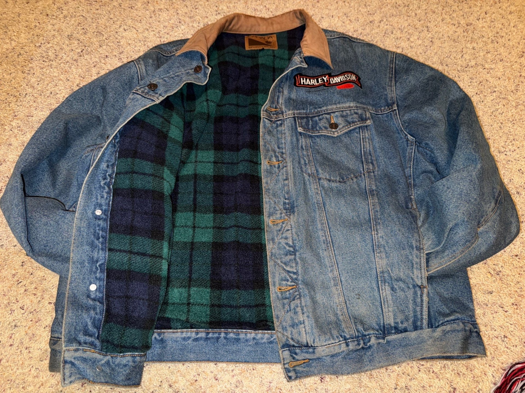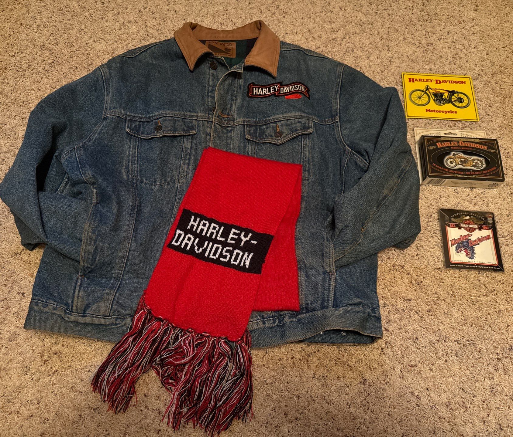 XL Harley Davidson Patched Thermal Jean Jacket w/Matching Scarf + Playing Cards