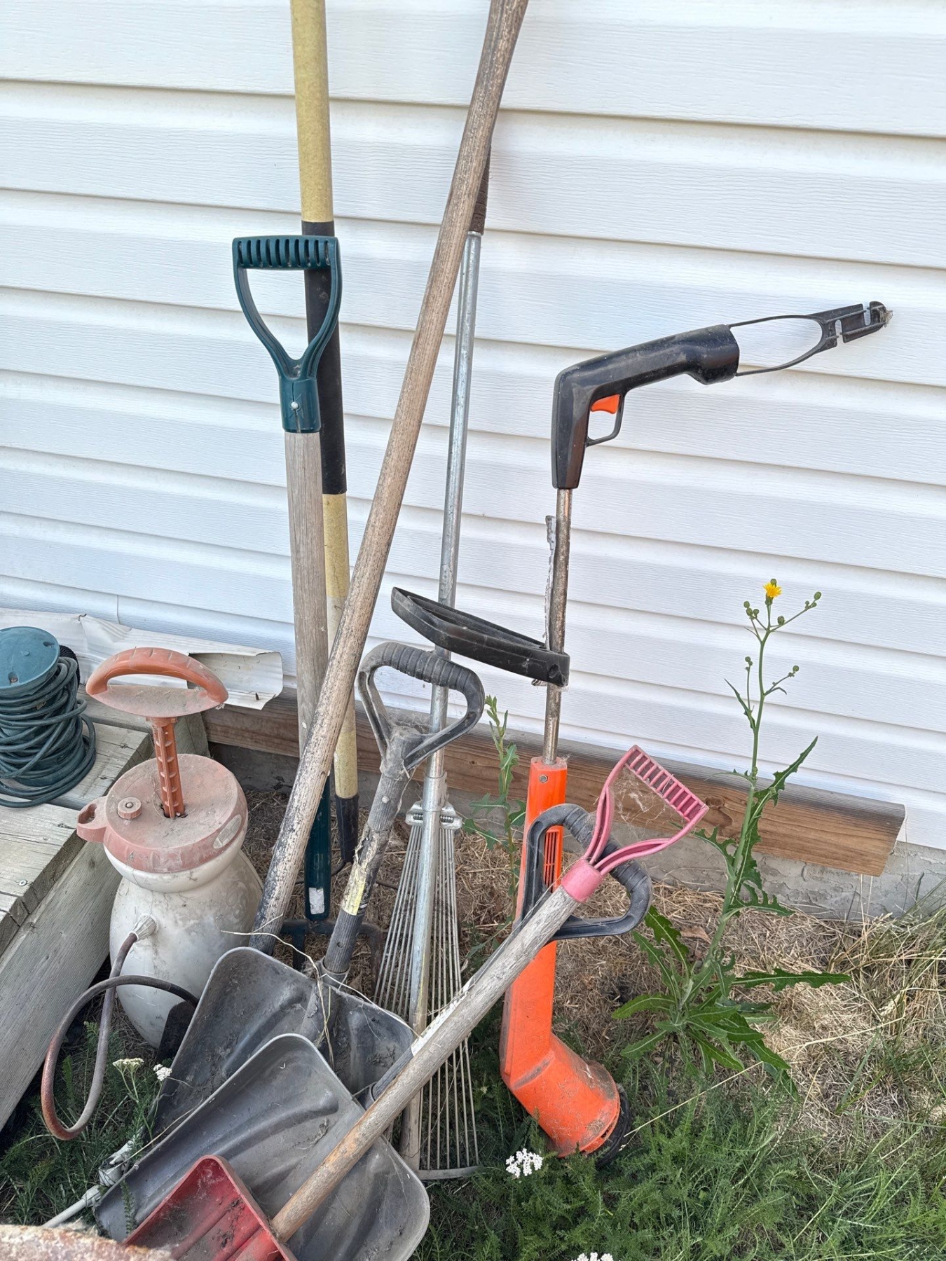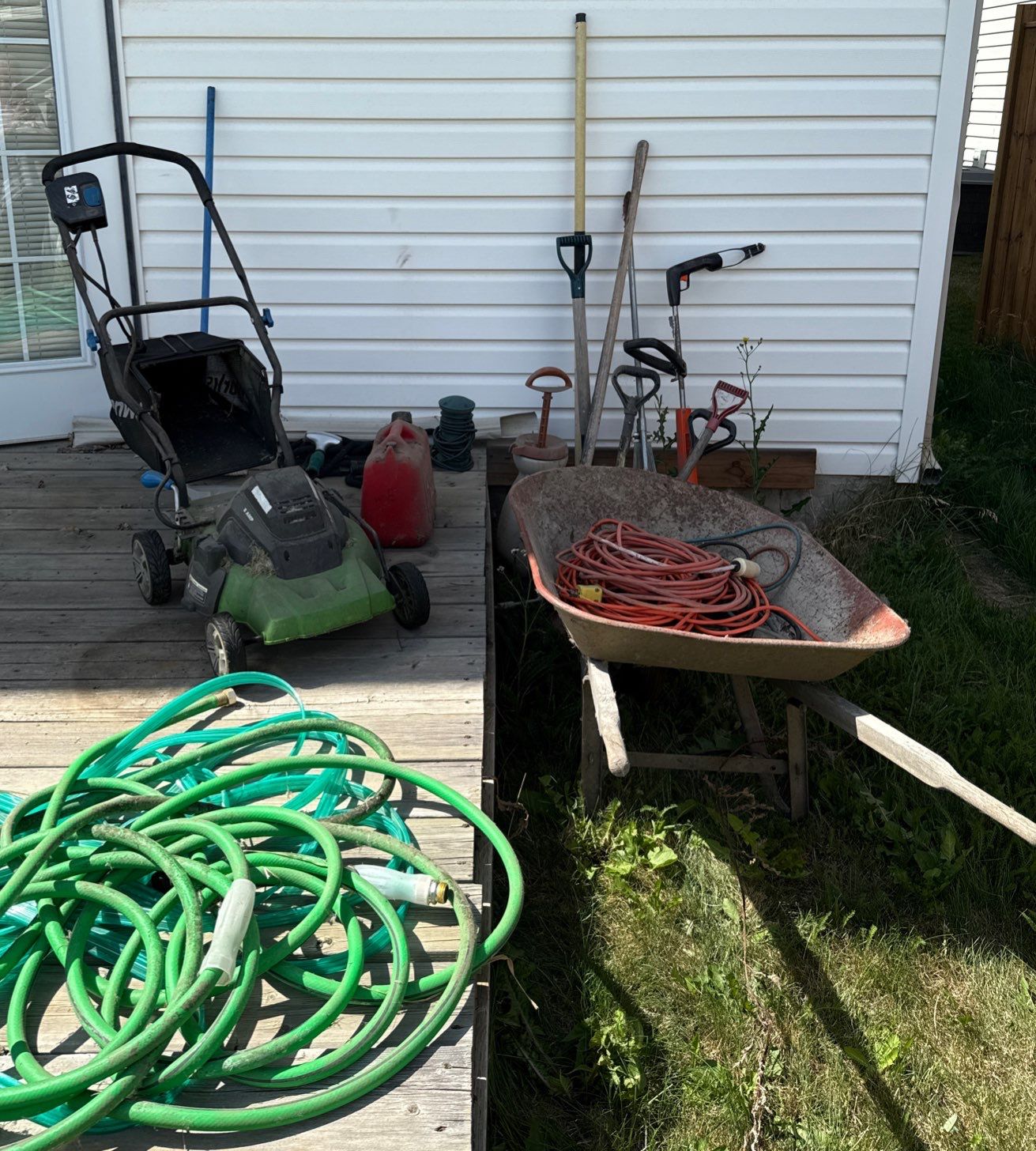 Yard & Garden Collection - Electric Lawn Mower Wheel Barrow Assorted Garden Tools