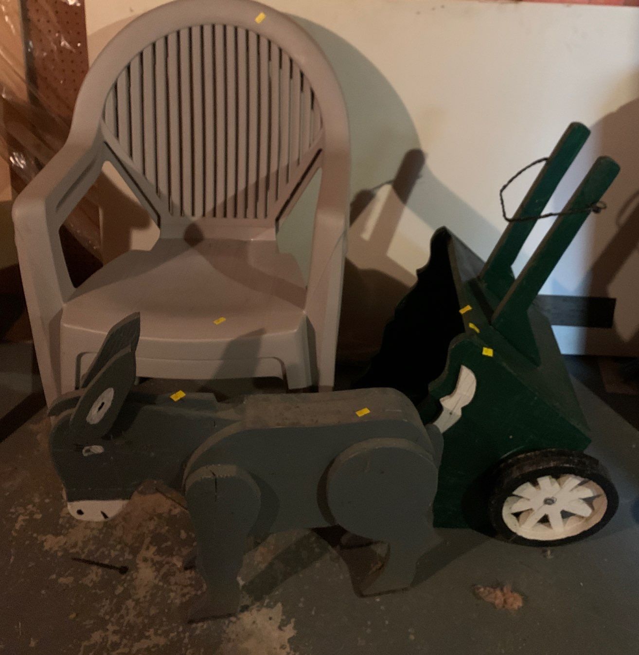 Yard Items & Deco - Donkey, Wheelbarrow from Wood, Chairs